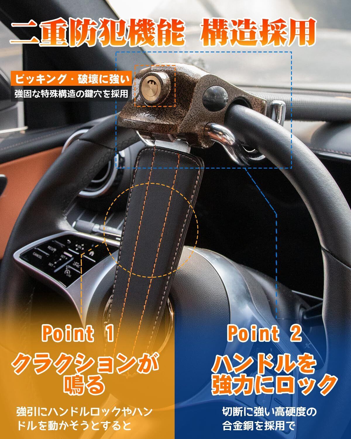 JiiinMiiin 自動車用ステアリングロック ハンドルロック 二重防盗設計 高硬度鉄製 耐切断・防錆仕様 車種対応広域 緊急脱出 鍵穴