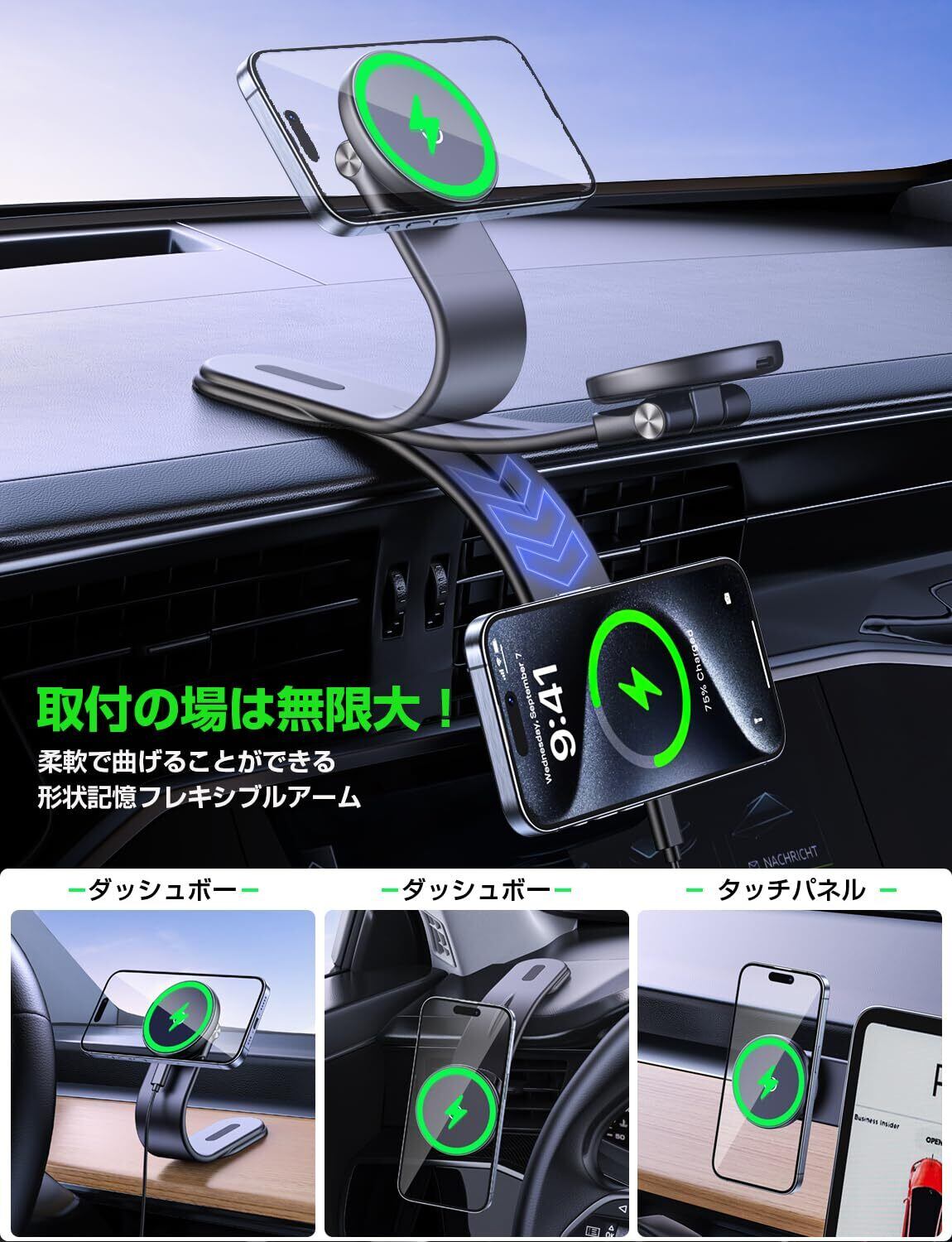 【新時代を開く・折り畳み可能&史上最強の磁力】車載ホルダー スマホホルダー 車 携帯ホルダー マグネット ワイヤレス車載充電器 急速充電 スマホスタンド マグセーフ超強力 形状記憶合金 3M粘着シール 360度回転 超強磁力 安定性拔群 片手操作 車用品 iPhone/Android4-7インチ多機種と99%車種が対応