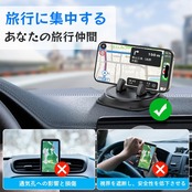 【耐久性の超強力粘着パット】:ナノゲルパッド付きの車載スマホ用吸盤は、ダッシュボードにしっかりと取り付きます。摂氏 - 20 度から摂氏 90 度の温度に耐え、溶けることもダッシュボードに痕跡を残すこともありません。iPhone 用の車載スマホホルダーで、凹凸の多い道で滑落する心配もありません。