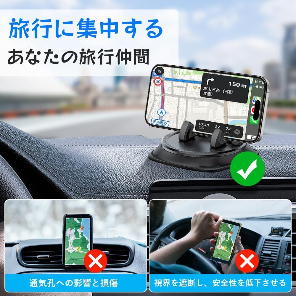 【2025新登場】スマホホルダー 車 置くだけ 車 ホルダー シリコン製 滑り止め 強力な粘着パット 360度回転 車載スマホホルダー 取り付け簡単 防振 脱着簡単 車用 スマホホルダー iPhone16 15 14 13 12 Pro Max Android対応 レンタカー シェアカー 全車種対応