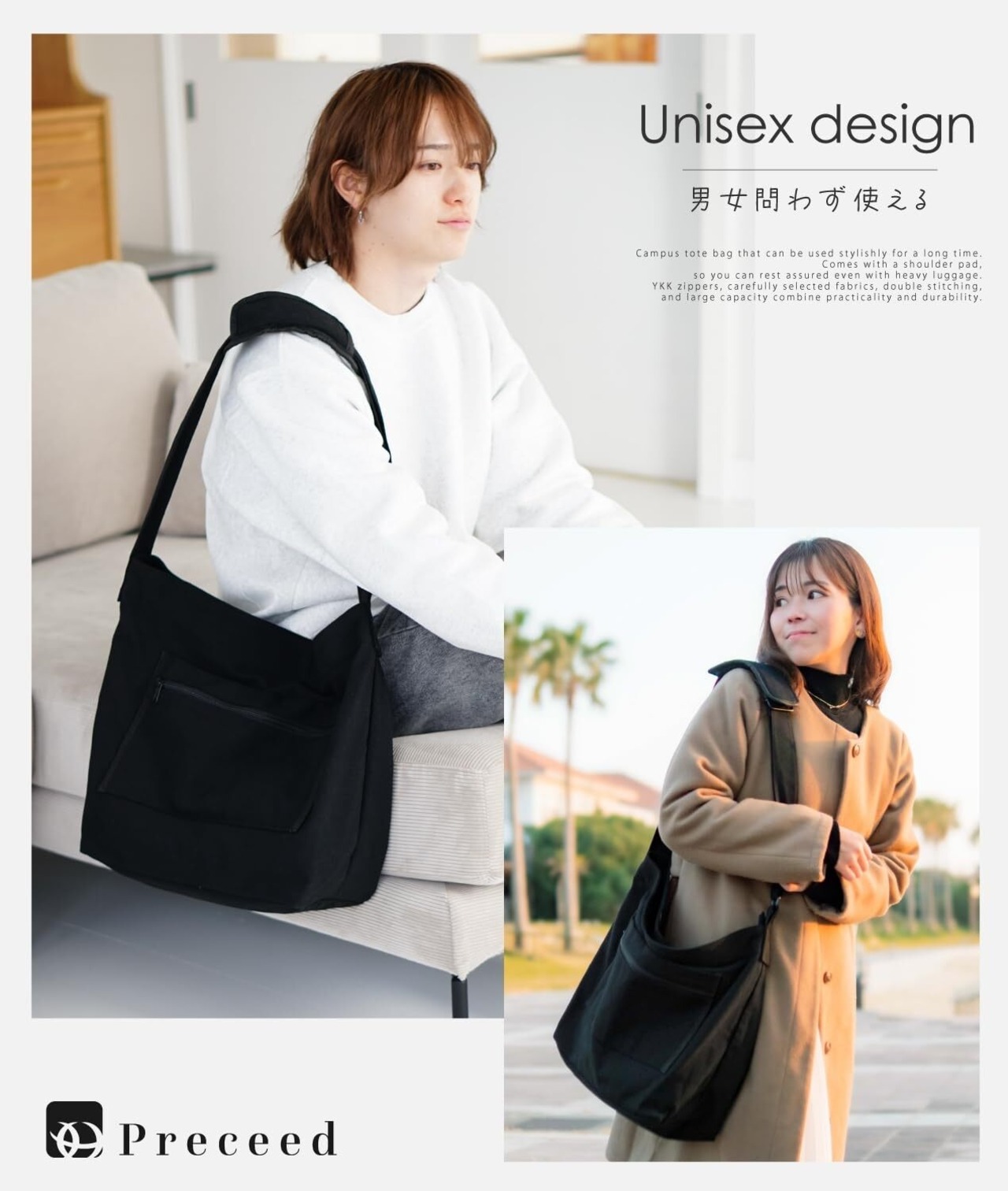 キャンバス 【徹底的にこだわった品質 】従来の品質を超える Preceed(プレシード)限定 キャンバス トートバッグ が登場。バッグが重くなっても安心「脱着可能ショルダーパッド」を付属。すぐ取りたい物を分けて収納できる「大容量内ポケット」に加え、厳選された「高品質キャンバス生地」と安心の高耐久高品質のファスナーを採用。学生カバン メッセンジャーバッグ エコバッグ 旅行バッグ ショルダーバッグ 、本製品1つでマルチに活躍します。