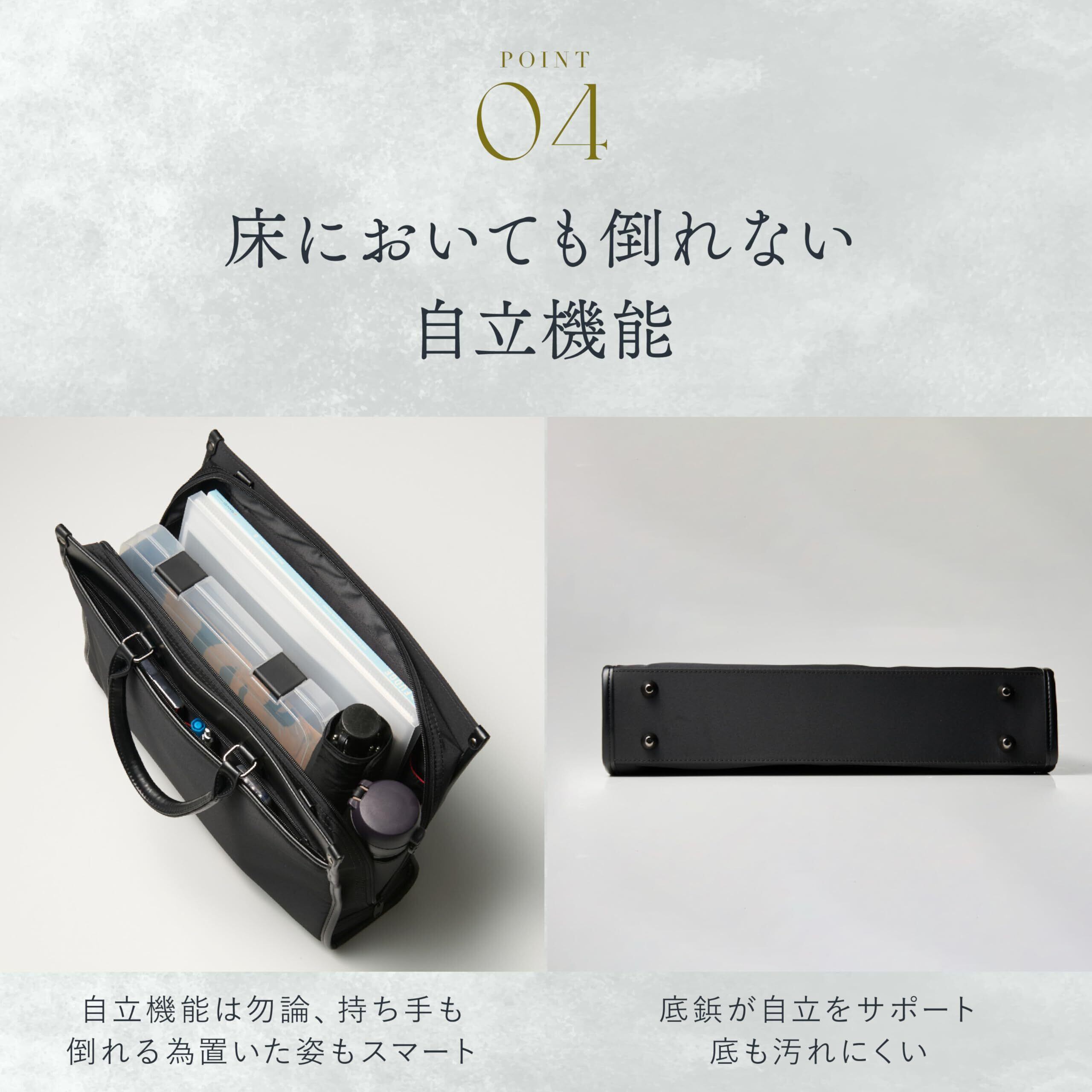 1. 第一印象で差がつく、洗練デザイン スーツに自然に馴染む上品でスマートなフォルム。シンプルながら品格のある外観が、就活や初出社の場面で好印象を与えます。リクルートバッグとしても、ビジネスバッグとしても長く愛用できるデザインです。