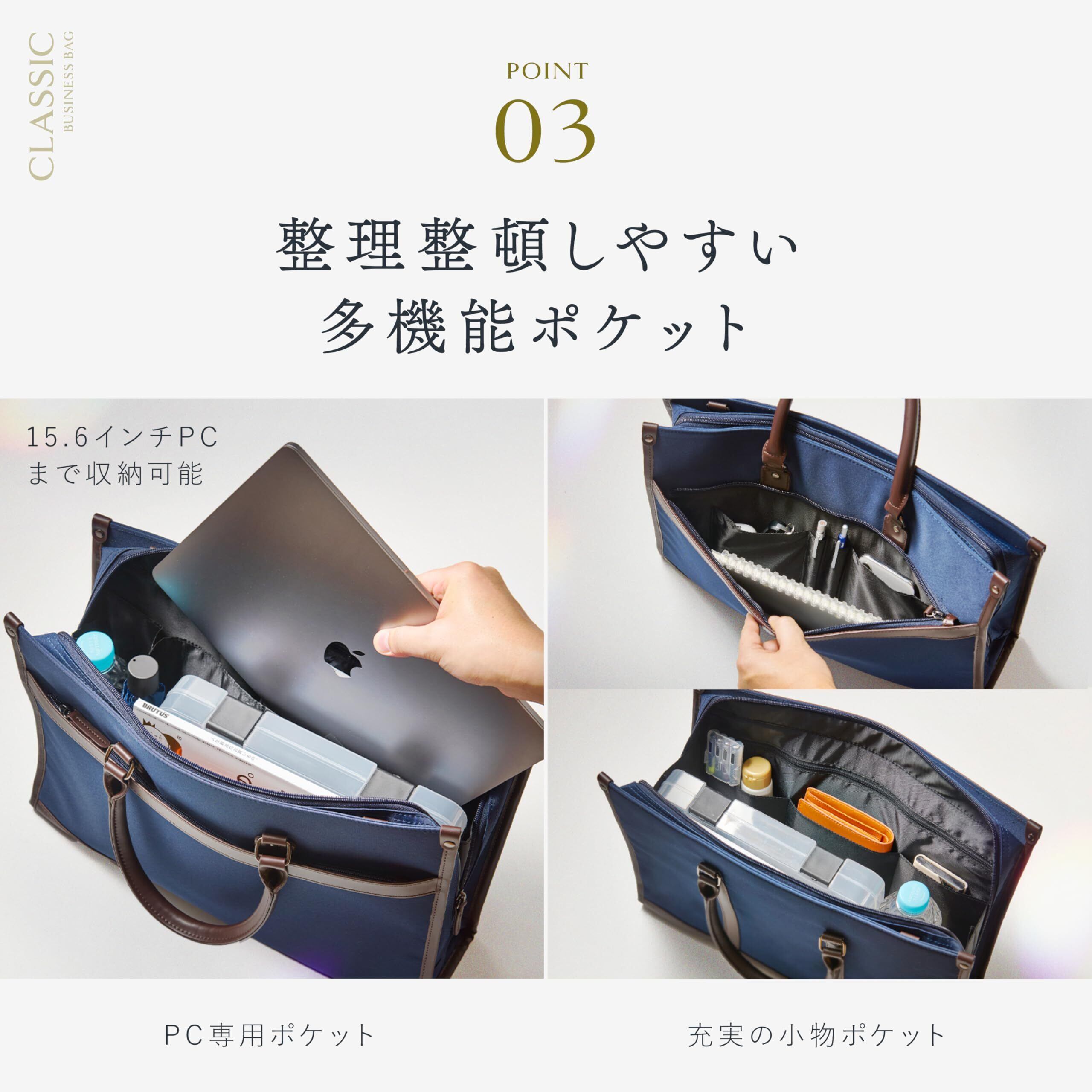 [グレヴィオ] 一流の鞄職人が作る ビジネスバッグ 大容量 15.6インチPC 撥水 自立 2way 出張 就活バッグ リクルートバッグ メンズ A4 ブラック ネイビー 黒 紺