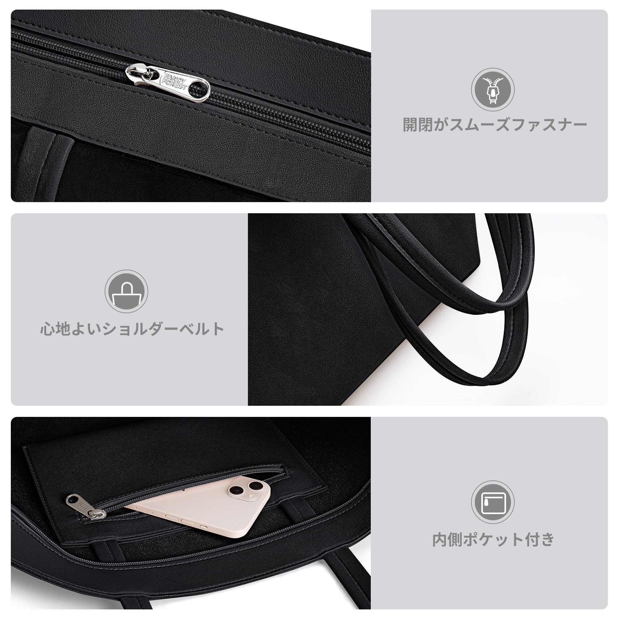 [KALIDI FANCY FOREST] ビジネス トートバッグ ショルダーバッグ 大容量 レディース 肩掛けバッグ 大きめ PUレザー 合皮 シンプル 自立 A4 横型 通学 通勤バッグ ファスナー付き