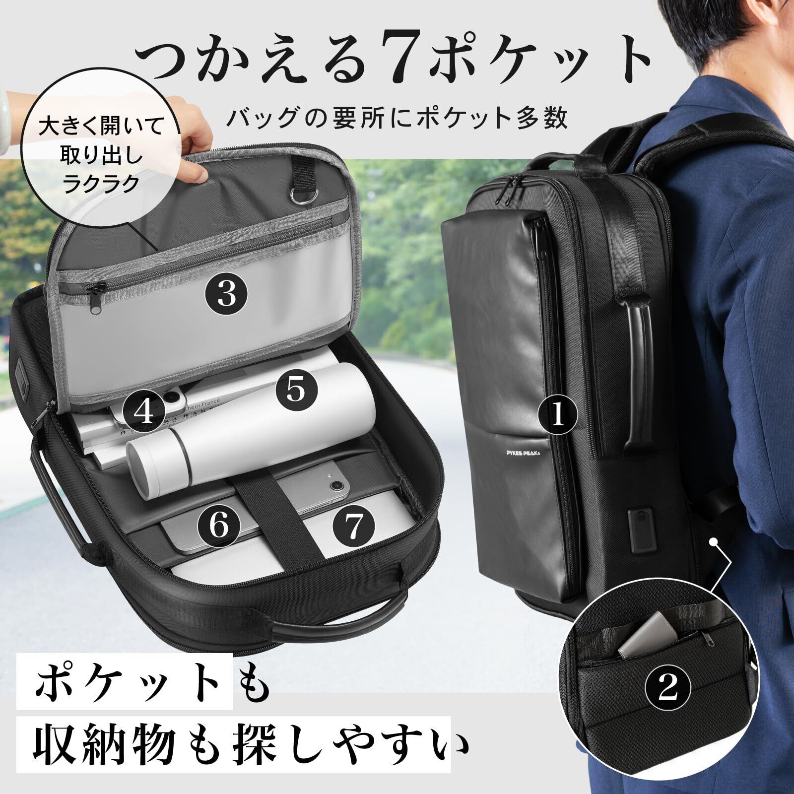 [PYKES PEAK] パイクスピーク リュック ビジネス 4WAY バックパック 横持ち 21-24L 拡張可能 軽量 背中 通気性 クッション 14インチ パソコン 収納 PCリュック A4収納 通勤 メンズ レディース 兼用 ビジネスリュック バックパック ビジネスバッグ
