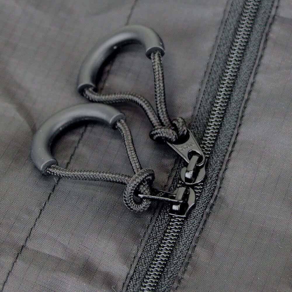 リフレクターテープとファスナー付きバージョン ダブルスライダーのファスナー付き。