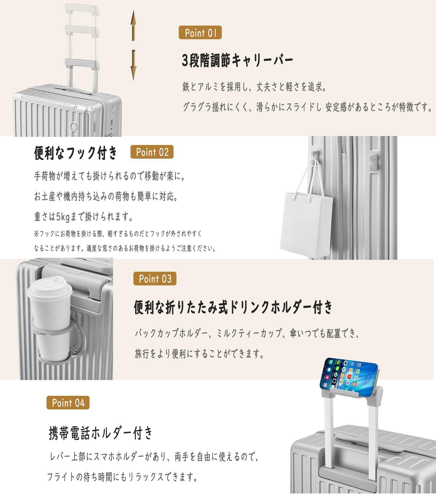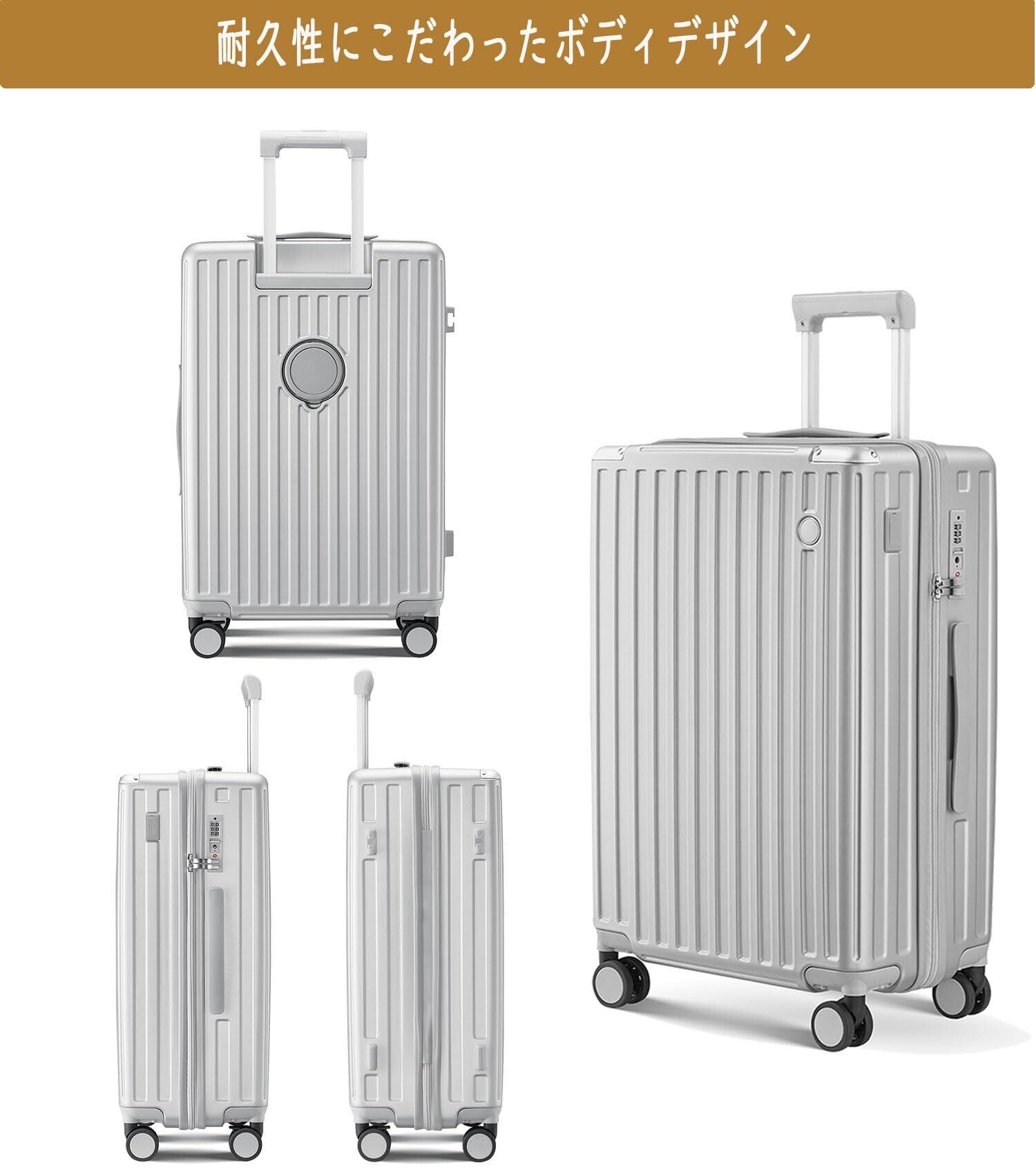 [Aecall] スーツケース 機内持ち込み キャリーケース ストッパー付き 超軽量 USBポート付き カップホルダー付き 携帯スタンド 隠しフック機能 キャリーバッグ 耐衝撃 静音 ダブルキャスター TSAローク ファスナータイプ キャリーバッグ 人気 おしゃれ 旅行 ビジネス 出張 留学 (シルバー, Mサイズ/4~7泊/託送必要)