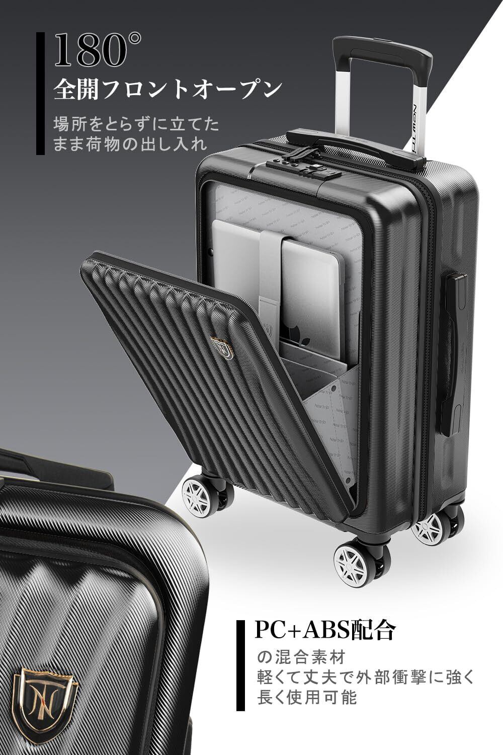 [New Trip] スーツケース 機内持ち込み フロントオープン キャリーケース Sサイズ USBポート付き ストッパー付き YKKファスナー TSAロック 静音 ダブルキャスター ビジネス 出張 1-3泊 40リットル ブラック