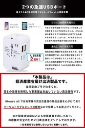 【 急速充電USB×2丨最大5A 】iPhoneやiPadを "最大5A" (各2.0A)の急速充電かつ "最大2 台" まで同時充電が可能。旅先でうっかり充電器忘れてしまった!!なんて時にもこれ1台で十分対応できます。荷物軽減で必要かつ十分のシンプルな機能設計です。 【 簡単10秒変換 】 初めての海外旅行で不安な方にも安心!どんな国のタイプでも10秒ほどで簡単に変換可能です 。※TypeC非対応