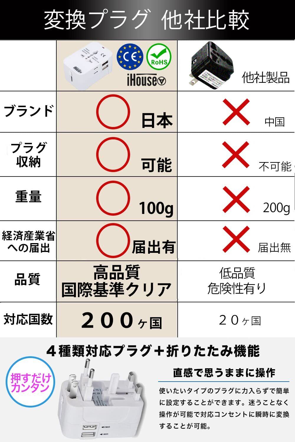 iHouse all 海外変換プラグ 充電 コンセント 海外旅行 2USBポート 全世界対応 経済産業省承認 Aタイプ Cタイプ Oタイプ BFタイプ 正規1年 (ピンク)
