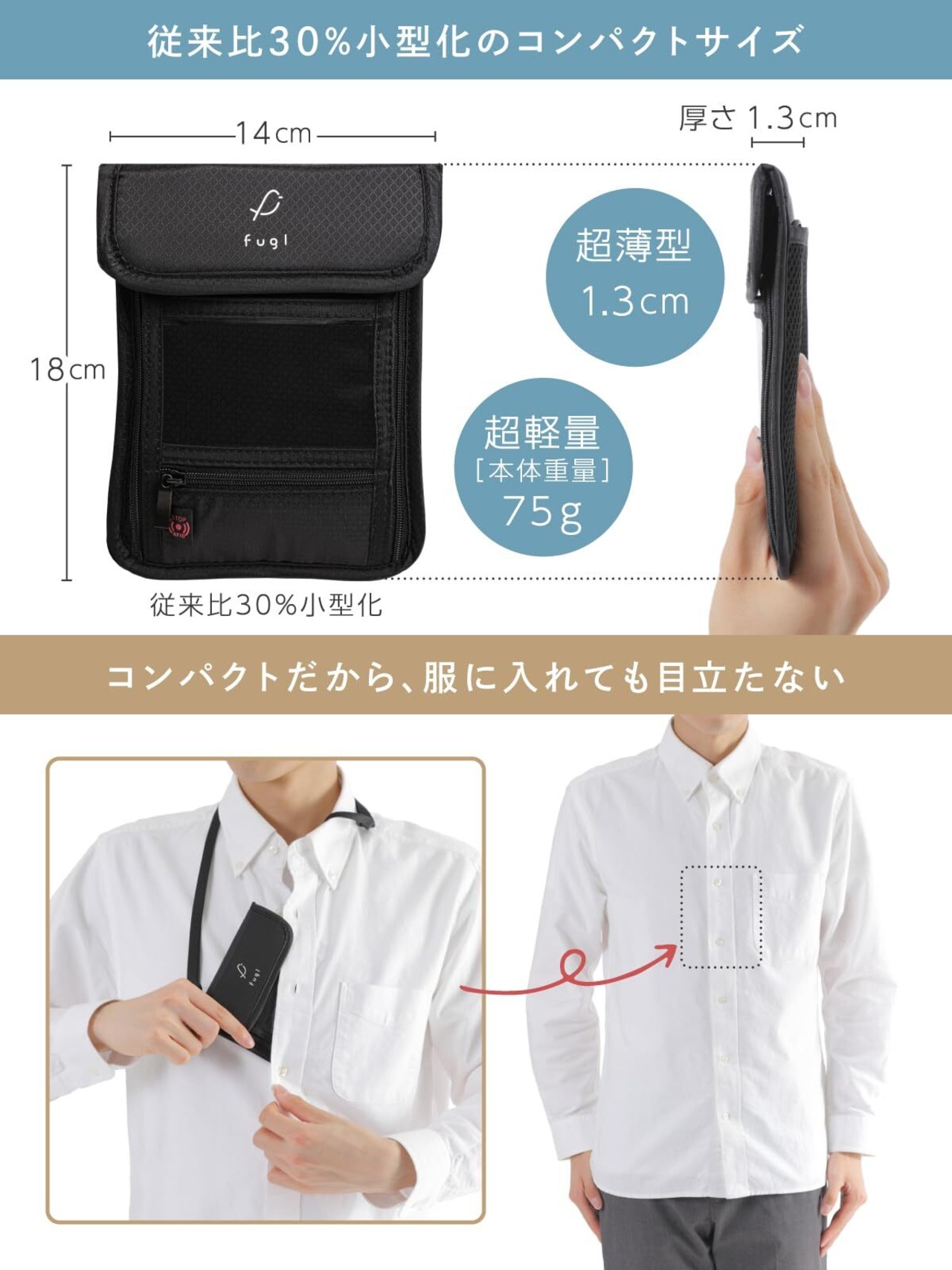 [fugl] 【るるぶ掲載x2層のスキミング防止構造】 パスポートケース 首下げ セキュリティポーチ スキミング防止 便利グッズ 海外旅行