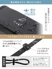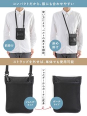 ストラップは長さ調整可能なので、首掛け、斜め掛けどちらにも対応可能。また、ストラップは取り外し可能なので、単体でも使用可能です。