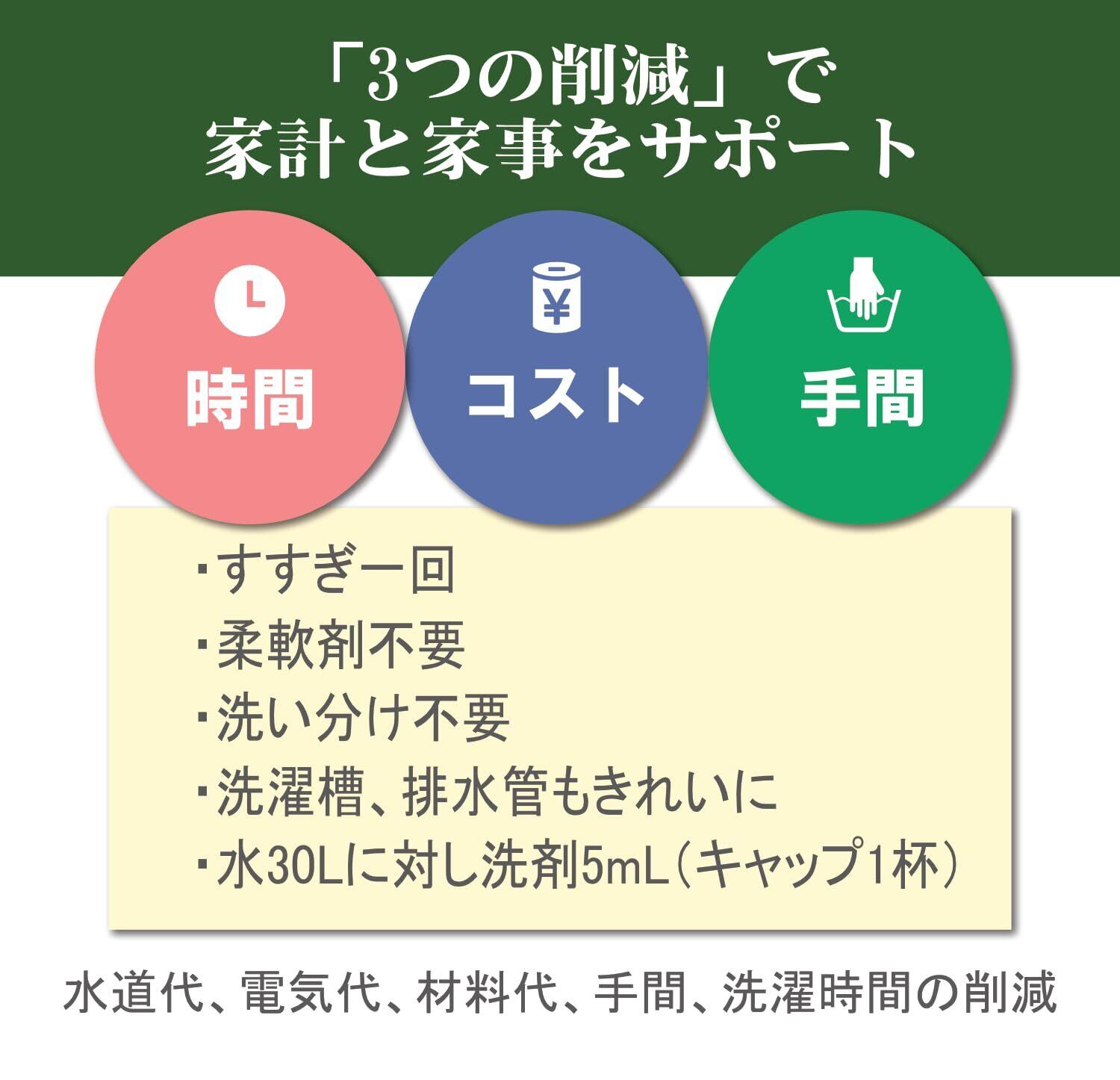 水30リットルに対し、わずか5ml(キャップ一杯分)でオドロキの洗浄力を発揮。