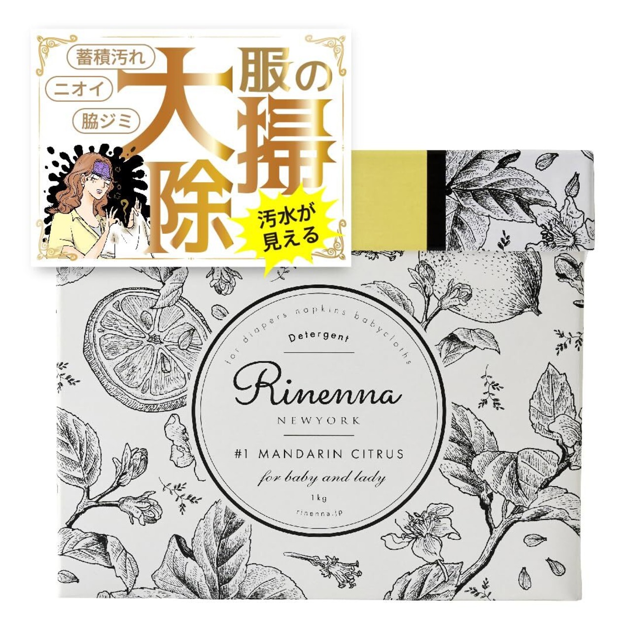 Rinenna(リネンナ) #1 洗濯用洗剤 本体 1kg|つけ置きで頑固な汚れ・ニオイを除去|血液・皮脂・黒ずみ汚れに|無蛍光・赤ちゃん衣類OK|マンダリンシトラスの香り
