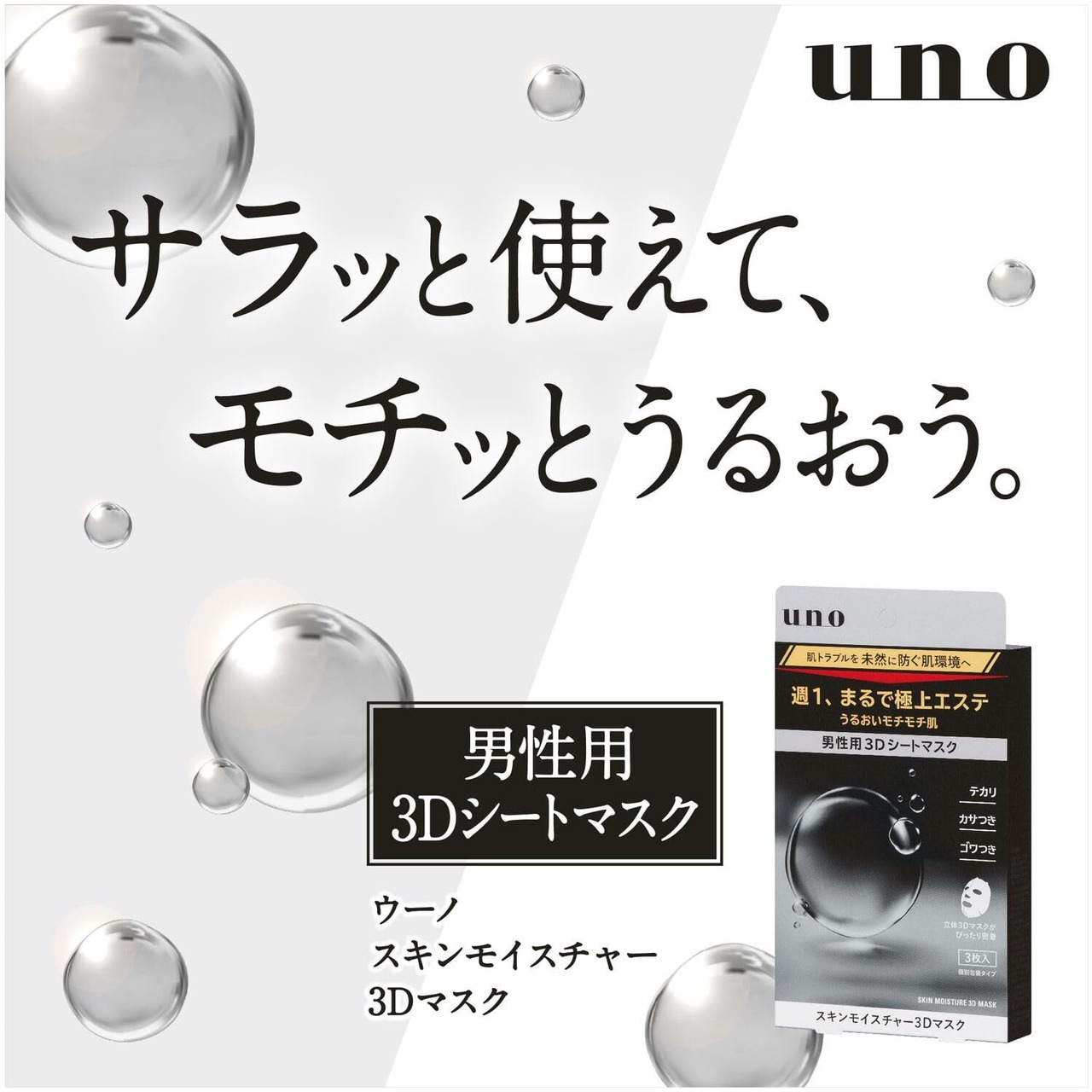 uno(ウーノ) スキンモイスチャー 3Dマスク 男性用 3枚入 (個別包装タイプ) フェイスケア シートマスク メンズ エステ うるおい モチモチ テカリ かさつき ごわつき
