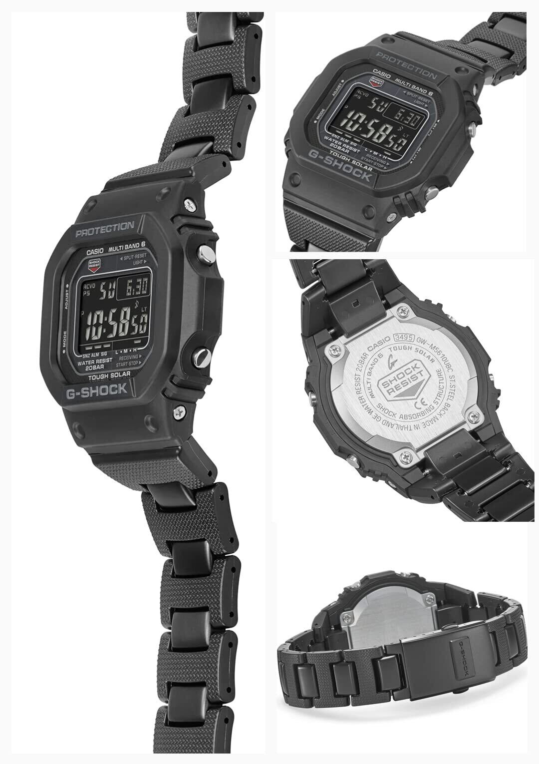 1983年に誕生したDW-5000Cのデザインを継承しているスクエアフェイス5600シリーズのマルチバンド6搭載モデルです。樹脂の中にメタルパーツを埋め込み、軽量化と強度を両立させたメタルコアバンドを採用。反転液晶を用い、全身モノトーンで統一したクールなモデルに仕上げています。タフネスをコンセプトに進化を続けるG-SHOCKの中で、ファーストモデルのDNAを受け継ぎ、更に進化した5600シリーズです。
