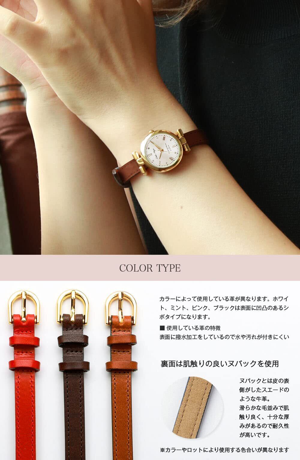 パステルカラーの華奢な本革ベルトが手元を可愛く華やかに見せてくれます。汚れにくい高級本革使用で着け心地もこだわりました。ベルトの表は撥水仕様なので濡れに強く、汚れにくい 日本製レザーを使用。上質感を合わせ持つ最高品質の仕上がりとなっております。