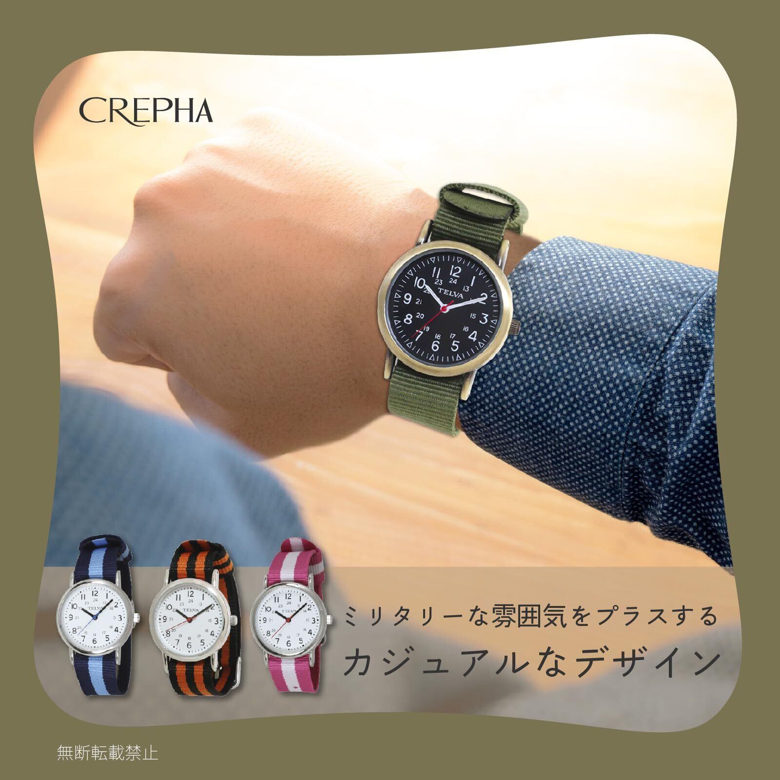 [クレファー] 腕時計 アナログ レディース 防水 布ベルト ナイロンベルト カーキ TE-AM043-KIG