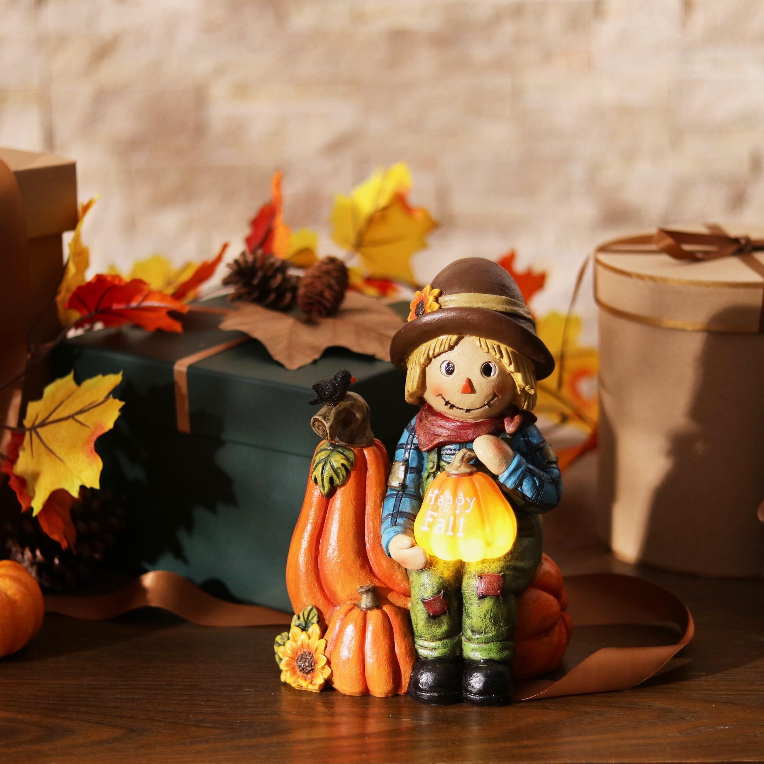Valery Madelyn 秋の飾り 季節の飾り かわいい かかし ソーラーライト付き ハロウィン 飾り 屋外 ハロウィン 置物 カボチャ 屋外用彫像 アウトドア 庭 飾り 置物 オブジェ 樹脂製 防水 16cm