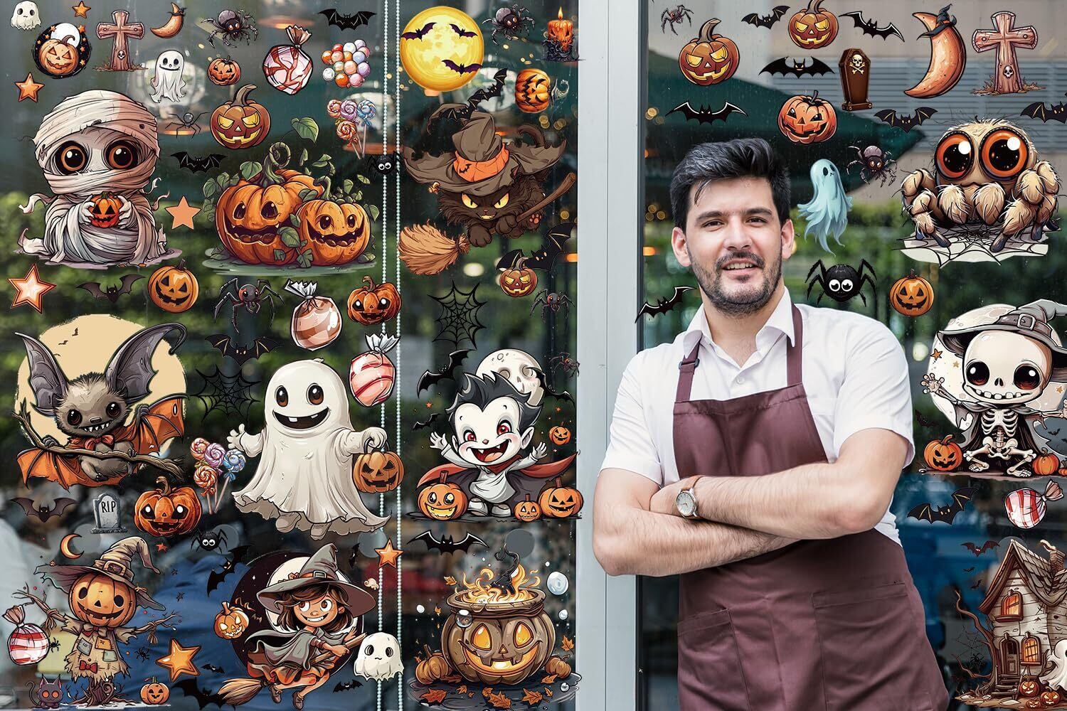 完璧なホリデーデコレーション:このハロウィンウィンドウステッカーは、ハロウィンを盛り上げます。オリジナルデザインのキュートなハロウィンキャラクターが、ホリデーデコレーションに華やかな雰囲気を添え、ハロウィンデコレーションに最適です。
