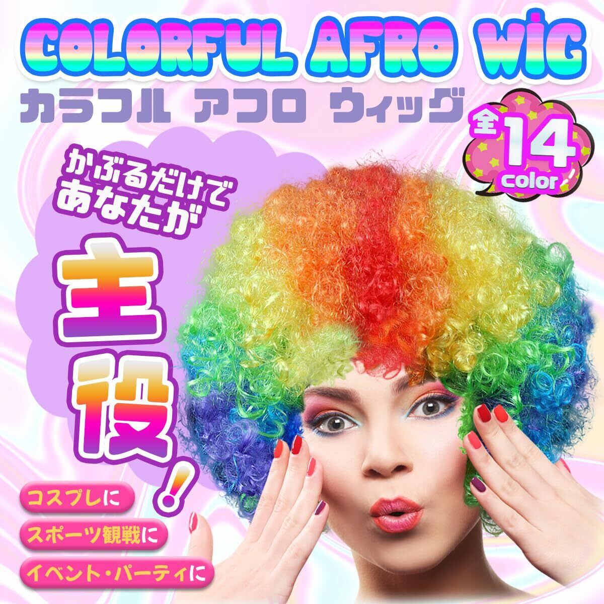 【映える!カラフル アフロ ウィッグ 全14色】かぶるだけであなたが主役!軽量でボリューム感抜群のアフロヘアーのウィッグですカラーバリエが豊富だから様々なシーンで大活躍!