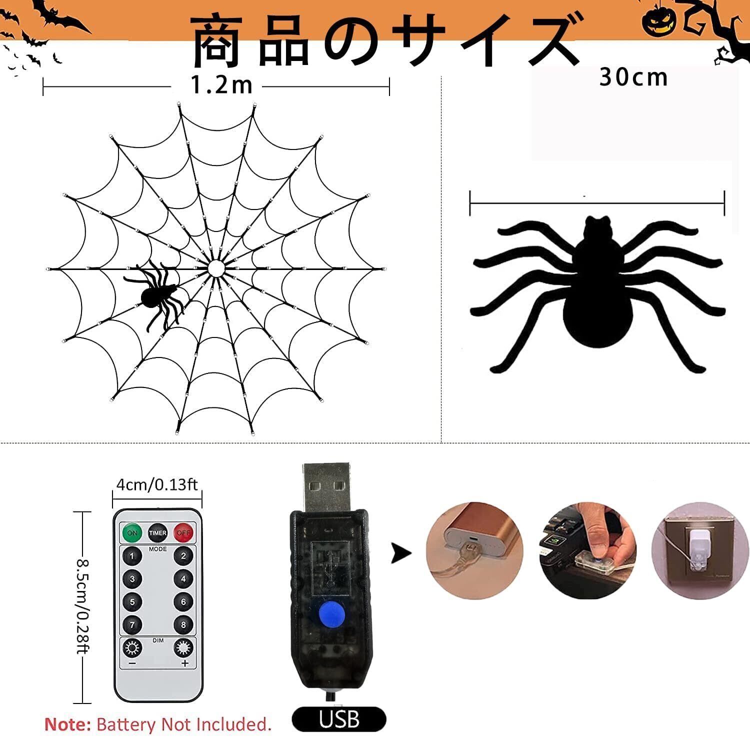【完璧なハロウィーンの装飾 】 慎重に設計され、高品質の素材で作られたこのハロウィーン照明スパイダー ウェブ ライトは、直径 120 cm で、ウェブ全体に 70 個のオレンジ色の LED ライトがあります。USBケーブルも付けて、USBポートやモバイル電源やパソコンなど電源を接続したら、動作できます。 リアルな黒いクモのぬいぐるみでハロウィーンに不気味なタッチを加えましょう。
