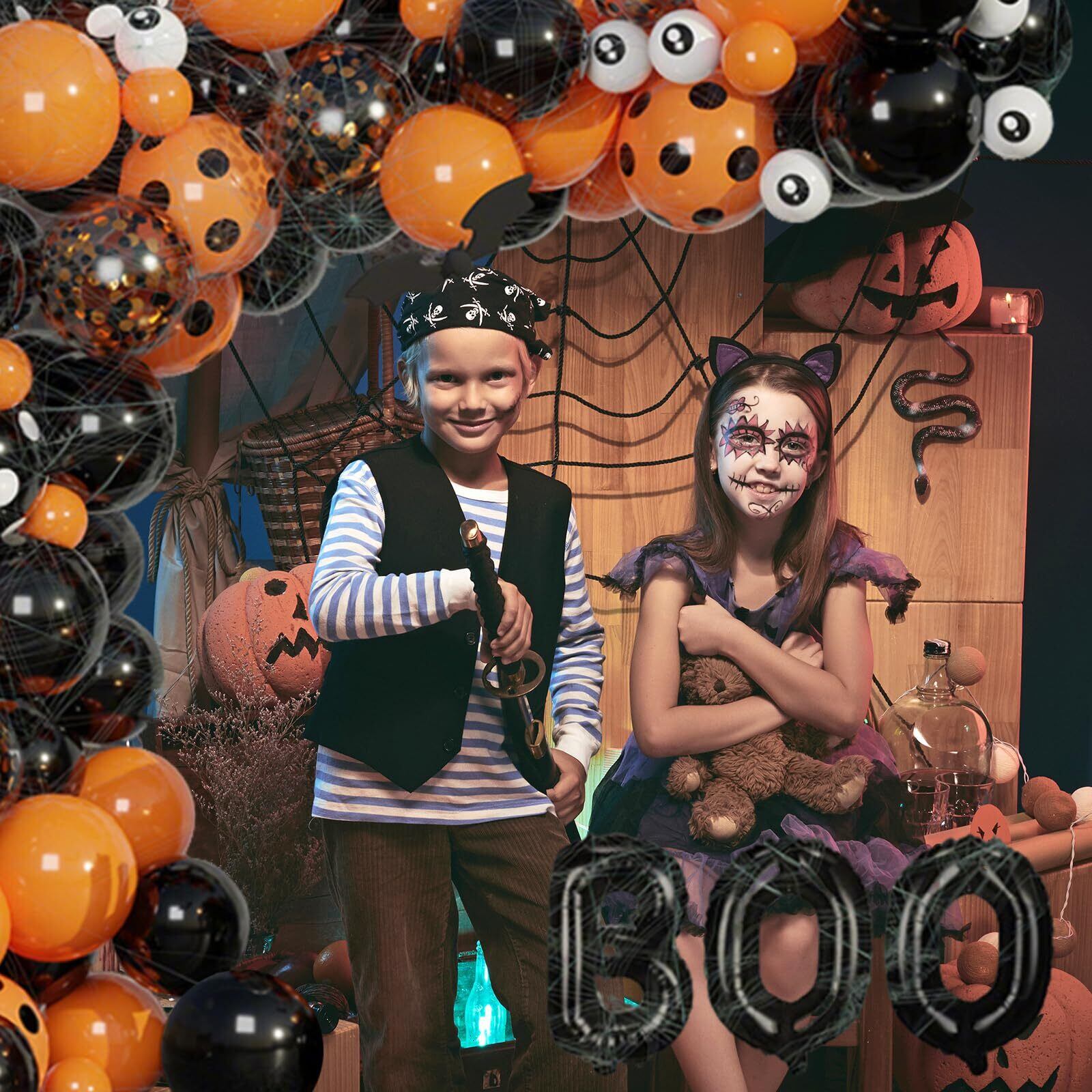DIFEIUKI ハロウィン飾り 風船 バルーン 飾り付け 115点セット ラテックス風船 紙吹雪風船 バルーン ガーランド コウモリシール 不気味な目玉 アーチキット オレンジ ブラック バルーンブーケ ハロウィンテーマパーティー用品 写真撮影背景