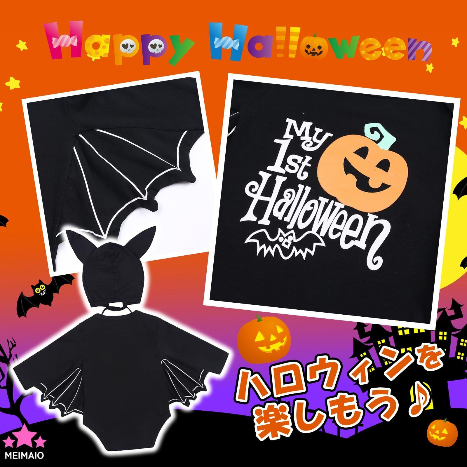 [メイマイオ] ベビーハロウィンコスチューム こうもりなりきりマント ロンパース 0歳 1歳 赤ちゃんコスプレ 寝相アート かぼちゃ 仮装 写真映え 記念撮影 ギフト プレゼント