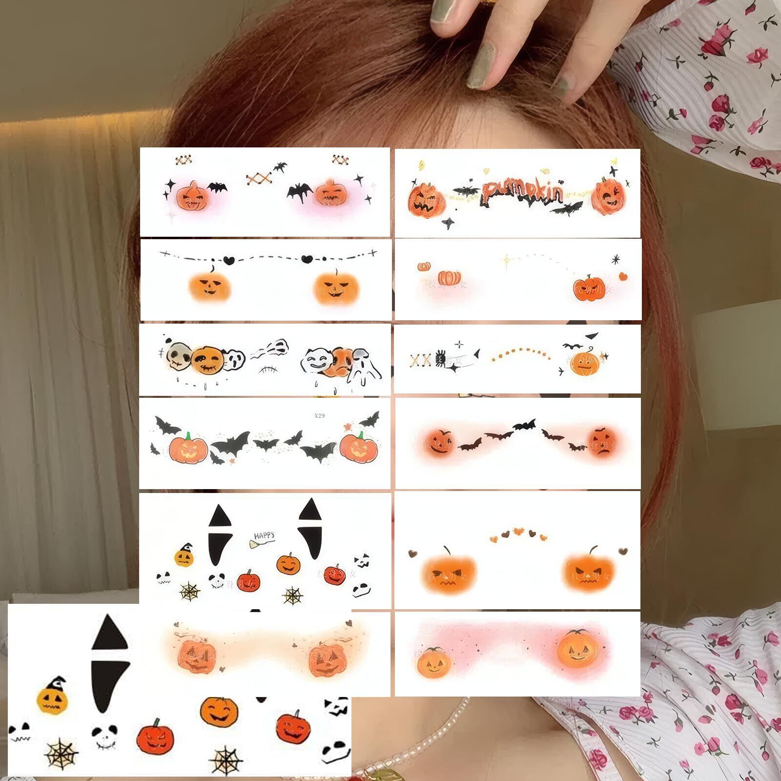 ZTFT ハロウィン タトゥーシール 12枚セット 仮装用 フェイスシール かぼちゃ 幽霊 コウモリ クモの巣 デザイン ハロウィン 顔シールパーティー コスプレ ハロウィン メイクメイク フェイスメイク フェイスステッカー かわいいステッカー ロールプレイ ハロウィンクアップアクセサリー
