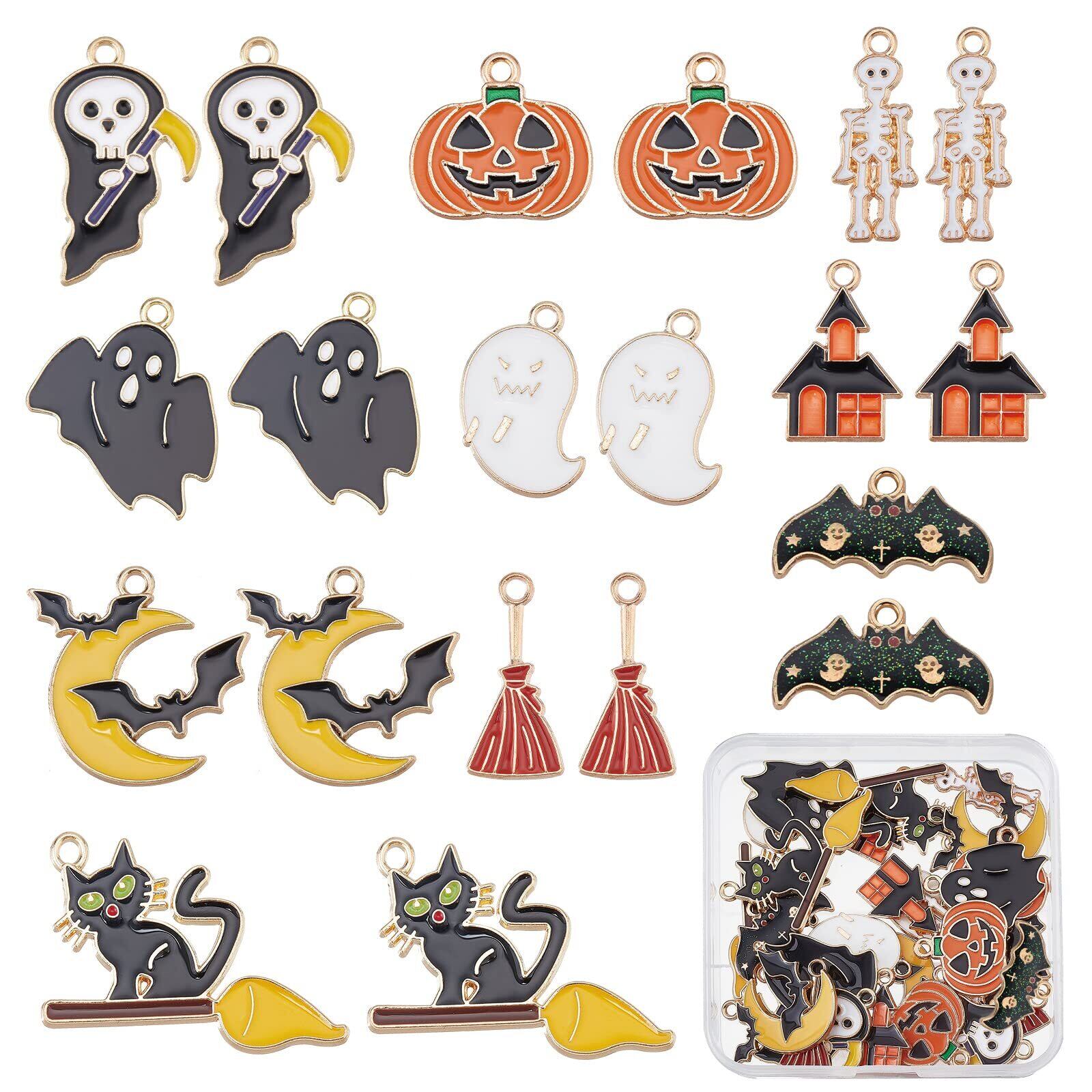 SUNNYCLUE 40個10種 ハロウィン チャーム カボチャ チャーム エナメル チャーム 蝙蝠 鬼 骨 パーツ 猫 カボチャ ムーン ピアス ネコ 月 イヤリング 城 ミイラ ネックレス スカル 幽霊 ブレスレット 南瓜 ゆうれい キーホルダー ねこ 箒 お部屋 メタルパーツ こうもり カボチャ ほうき エナメル チャーム アンチック エナメル 合金チャーム マカロン チャームパーツ アクセサリー 基礎パーツ ジュエリー作り レディース デコキット クラフト手芸 手作りハンドメイド キット DIY飾