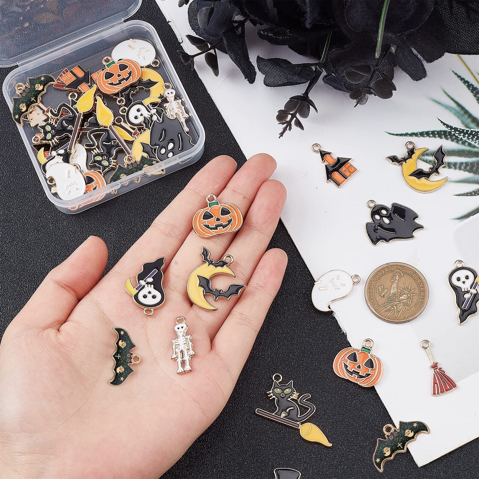【精巧な細工】:カボチャ、蝙蝠、猫、月、ミイラなどのチャームデザインは生動で、本物に似っています!とても精緻で作られています。