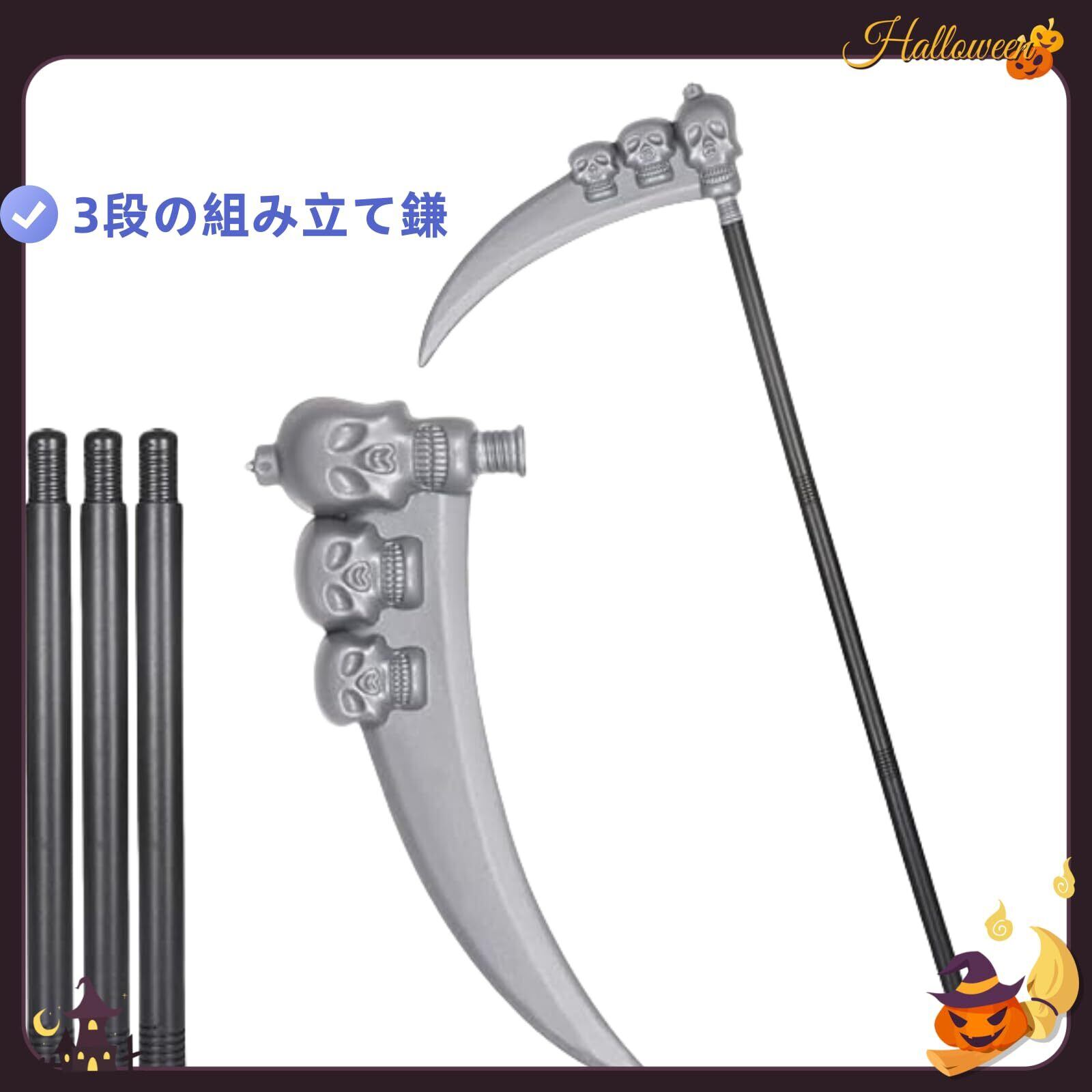 【サイズ説明】マント:着丈125cm、キッズ用の死神衣装。大鎌のサイズは約92x35cm。