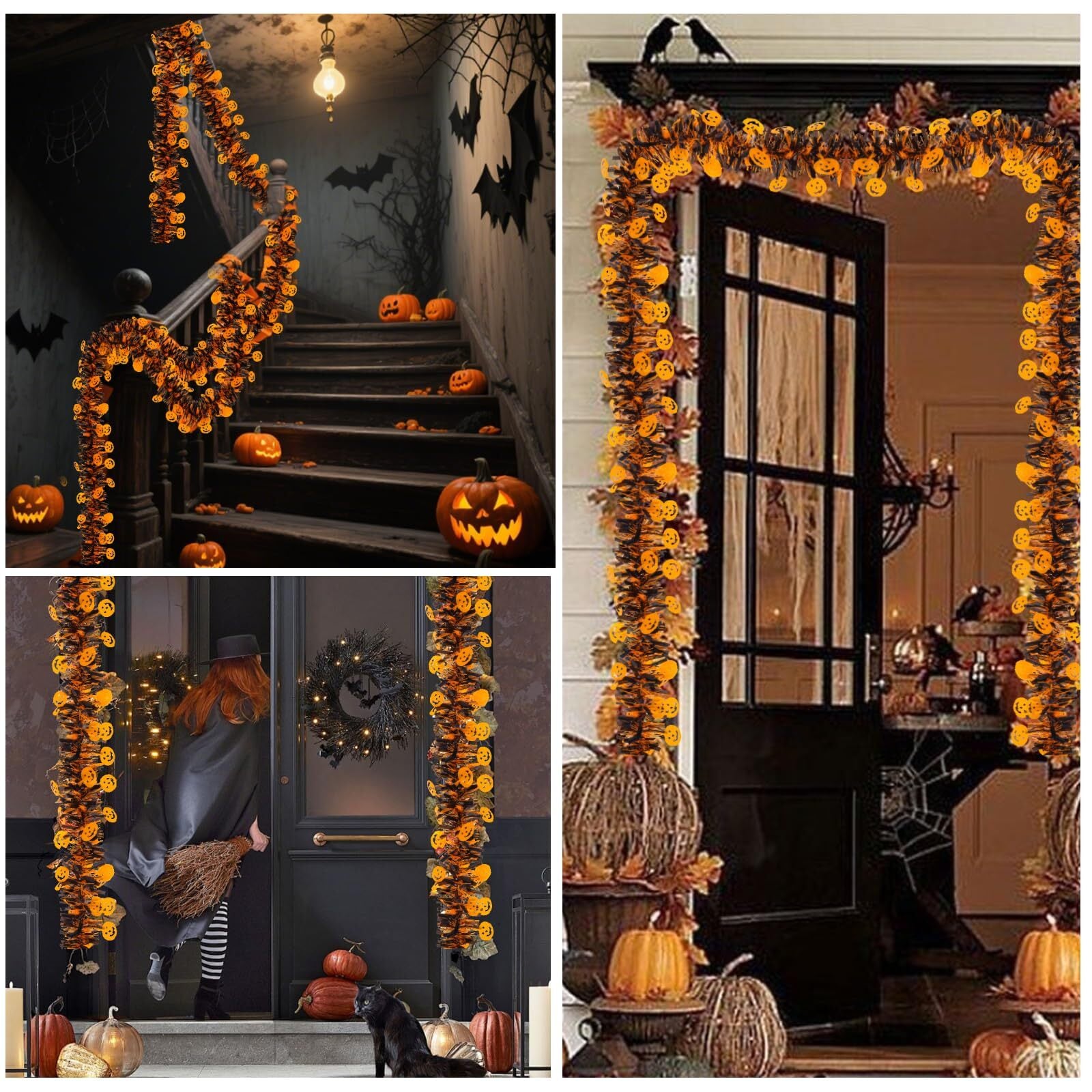 siawadeky ハロウィン飾り モール キラキラガーランド 2色 8本セット カボチャ 幽霊 メッキモール 吊り下げ ガーデン装飾籐 藤蔓 パーティー イベント 雰囲気作り 屋外 室内 デコレーション パーティー用品 2m/本