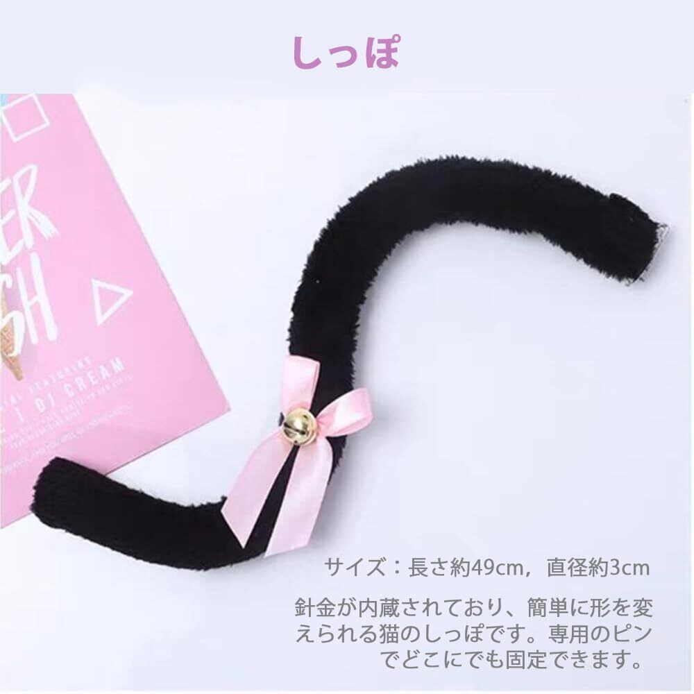 【調節可能なしっぽ】針金が内蔵されており、簡単に形を変えられる猫のしっぽです。専用のピンでどこにでも固定できます。