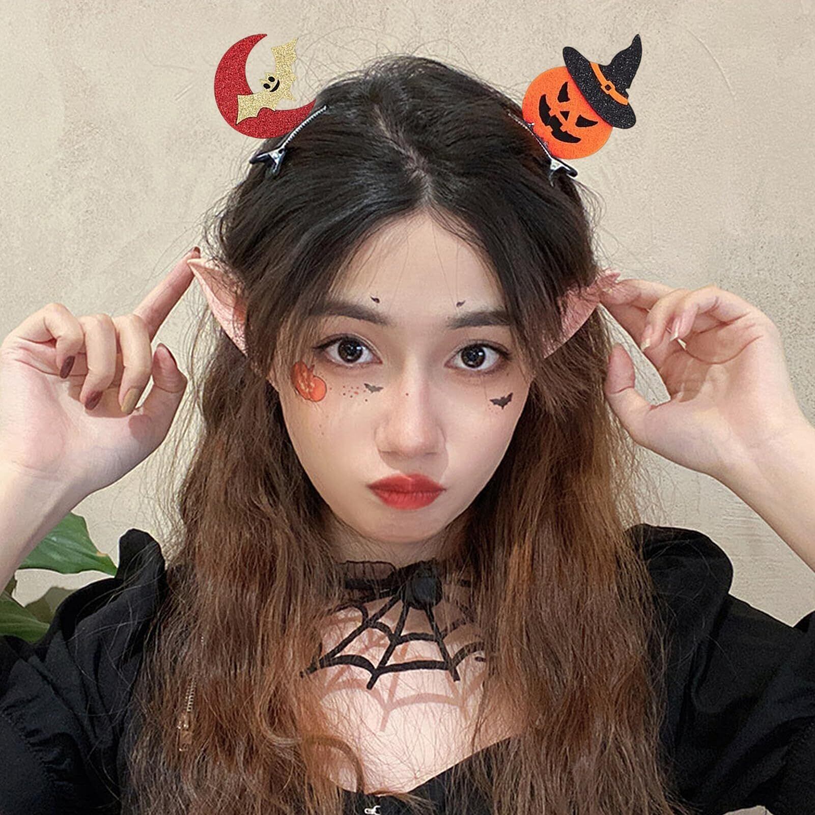 ハロウィン仮装 髪飾り ヘアピン かぼちゃ おばけ コウモリ 魔女帽子 スカル 猫 鬼の手 ハロウィン限定デザイン お祭り雰囲気 (帽子カボチャ+葉カボチャ+帽子+月コウモリ+黒猫+幽霊)
