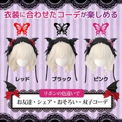 悪魔リボンカチューシャは、ブラック、レッド、ピンク!リボンの色が選べる。3Way仕様で、ヘッドドレス、耳、リボンの取り外しOK。3アイテム、単体、組み合わせも楽しい!衣装に合わせたコーデが楽しめるコスプレ必須アイテム!