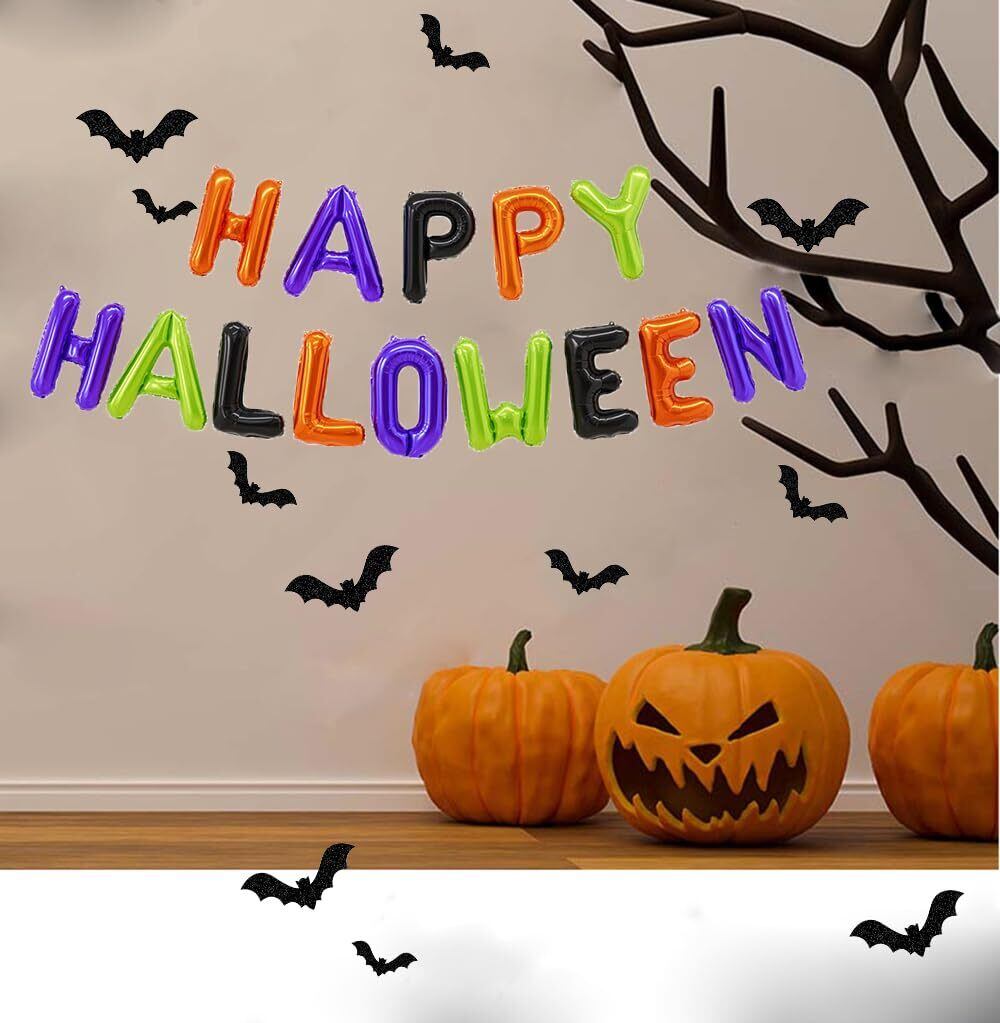 ハロウィン 装飾 バルーン 飾り付けセット ハロウィーン風船 コウモリ 蝙蝠 HAPPY HALLOWEEN文字風船 ハロウィーンパーティーデコレーション