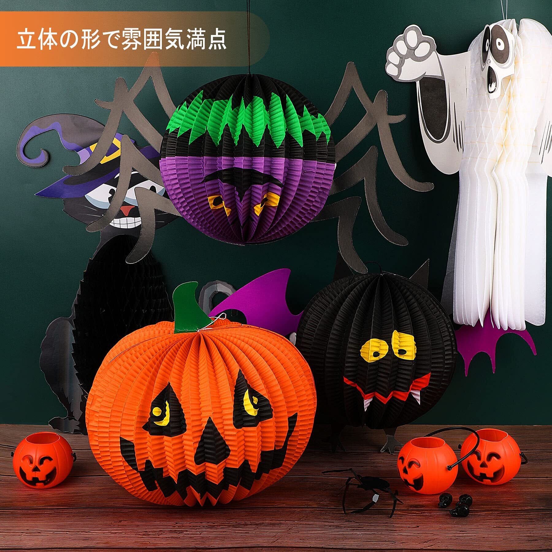 【デザイン】これらのハロウィン飾りは立体型にデザインされて、天井や壁に吊り下げれば、ハロウィンムードが一気に盛り上がります。また、折りたたみ式でスペースをあまり取らなくて収納にも便利です。