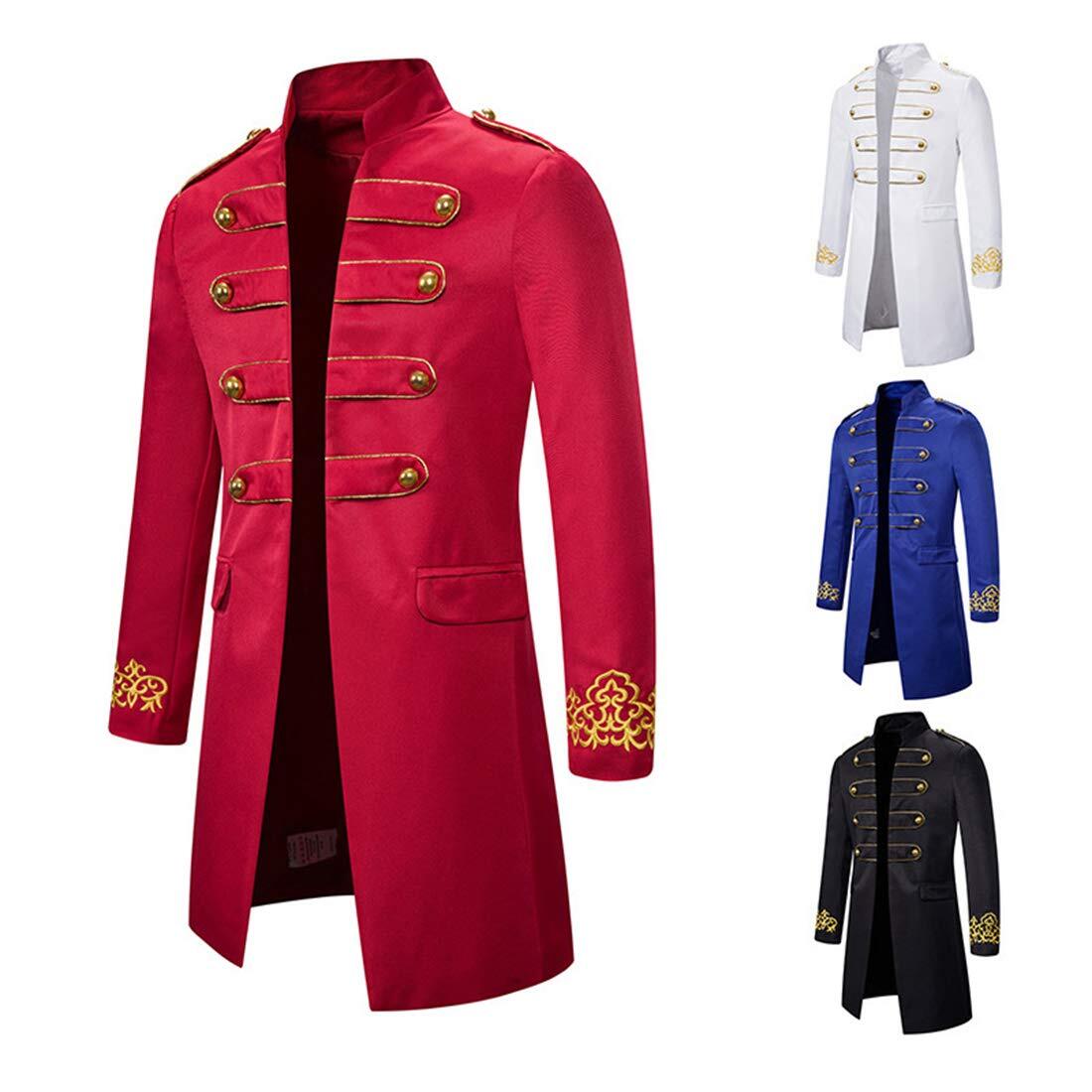 NACZHLOVELL 演出服 中世 貴族服装 メンズ ロングコート仮装 コスプレヨーロッパ風 復古風 ナポレオン風ジャケット 大人 王子様 将軍様 衣装 大人 ハロウィン イギリス 豪華 パーティー コスチューム 宮廷服 演劇 舞台 (レッド, L)