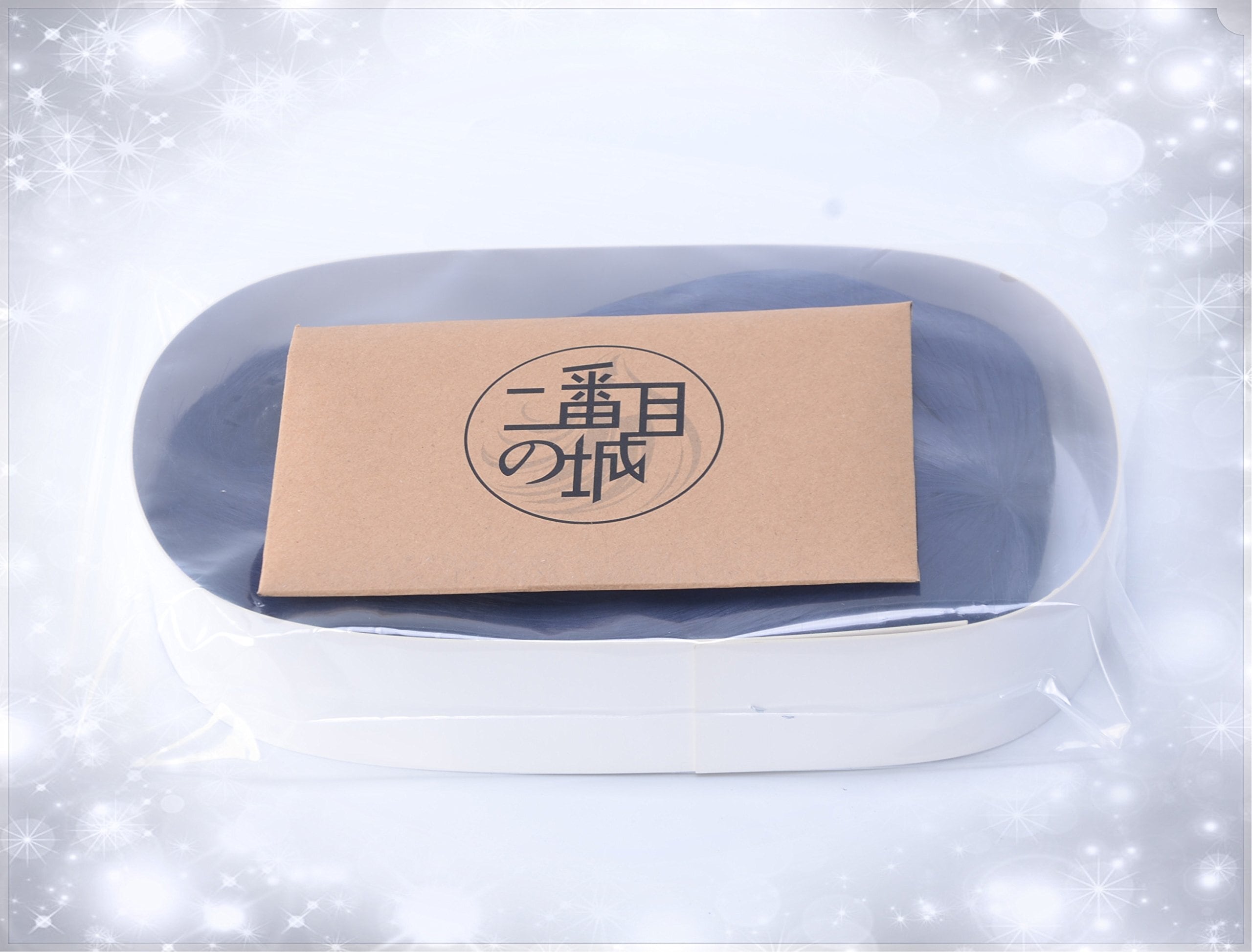 コメント:梱包する時にウィッグが押さえられないように補強白巻紙を入れます。それに、おまけ3点(ヘアピン、ウィッグネット、メモパッド)は二番目の城オリジナルの封筒に入れて送付致します。どうぞ!