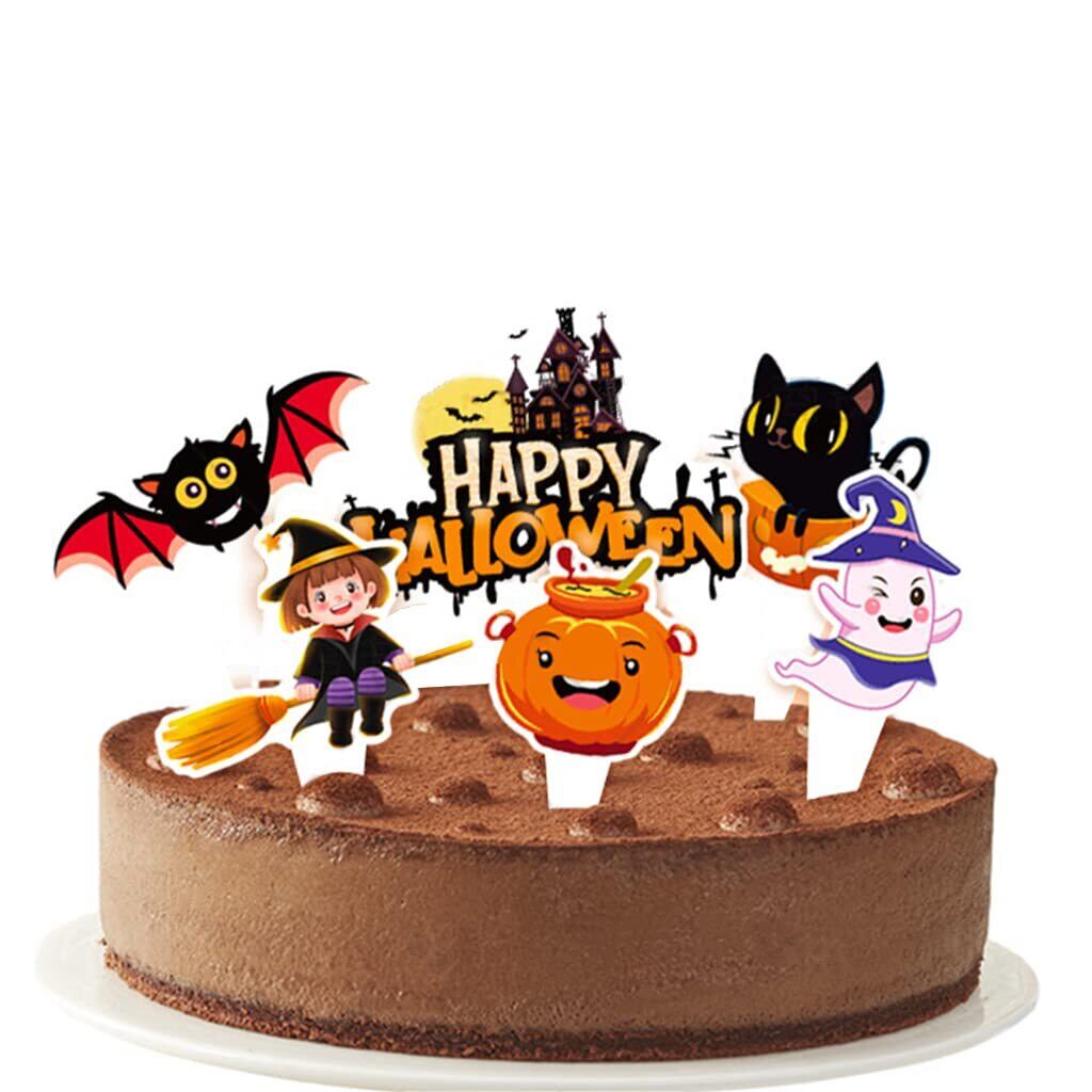 デザインが可愛い魔女、幽霊、かぼちゃ、猫、コウモリ、HAPPY HALLOWEEN,ケーキ飾りに最適。