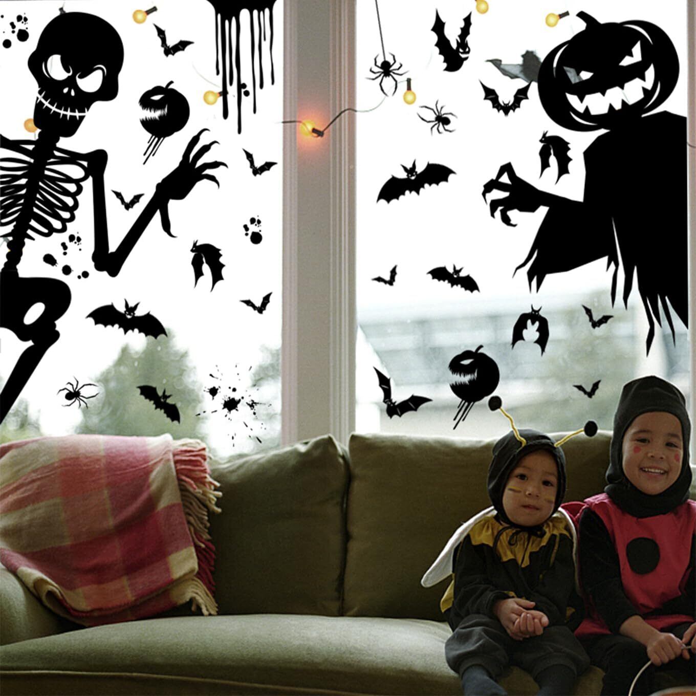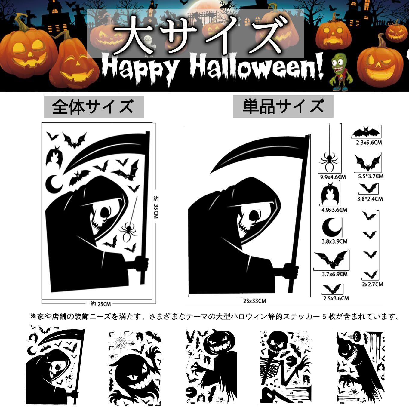 ZEZYXUFM 5枚78pc ハロウィン 飾り 静電ステッカー 特大 防水 両面 デコレーション 静電吸着 剥がせる 汚れない ウィンドウ クリング スケルトン怪、死神、パンプキン幽霊、巨口怪物、コウモリ、スパイダー ウィンドウ ステッカー 部屋 装飾品 窓ステッカー 学校 バー 店 パーティー装飾