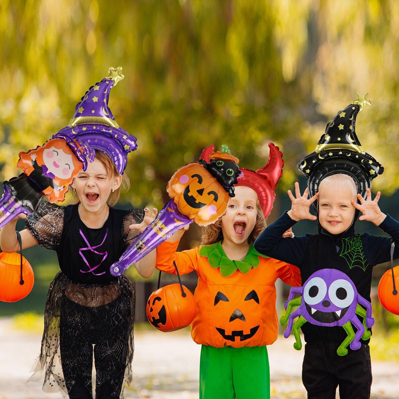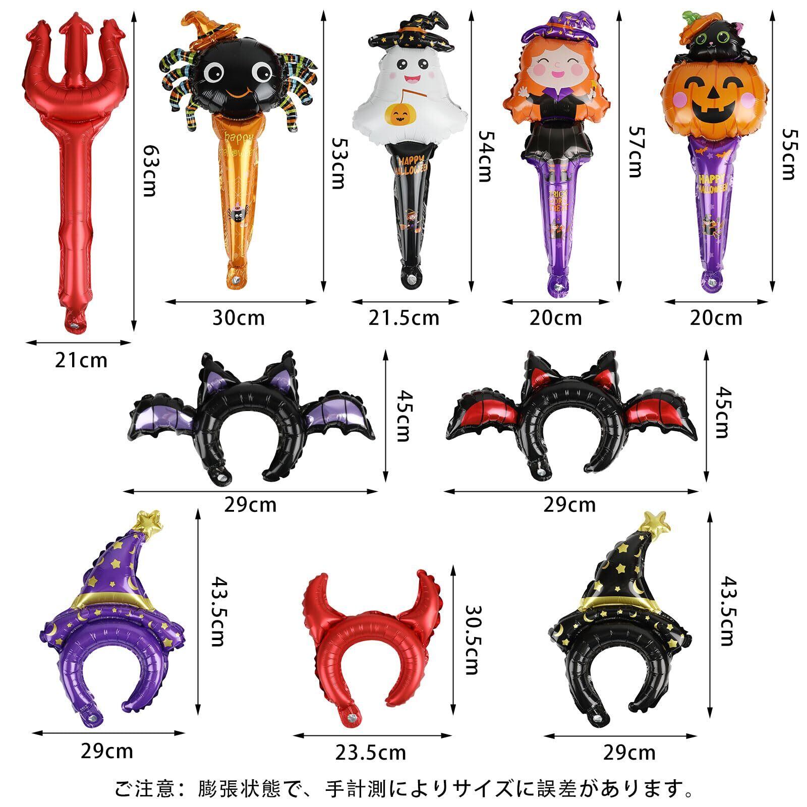 CINECE ハロウィンカチューシャ スティックバルーン バルーンカチューシャ 手に風船を持つ アルミホイルバルーン パーティー 装飾 クモ 魔女 10pcs