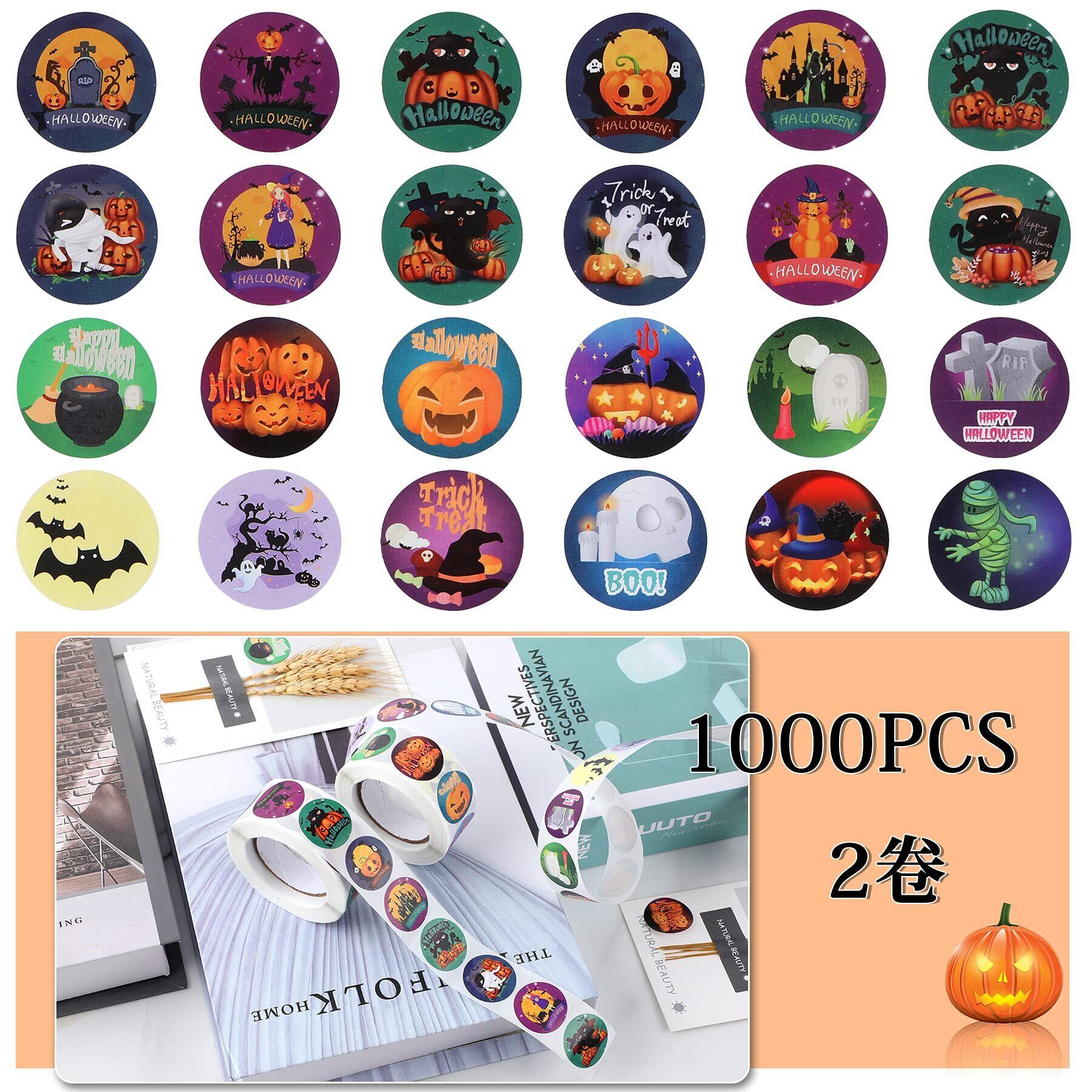 SANNIX ごほうびシール ハロウィン 1000枚入り ハロウィン シール かわいい ご褒美シール 24柄 ステッカー カボチャ 手帳 シール ハロウィン 飾り 英語シール 直径25mm