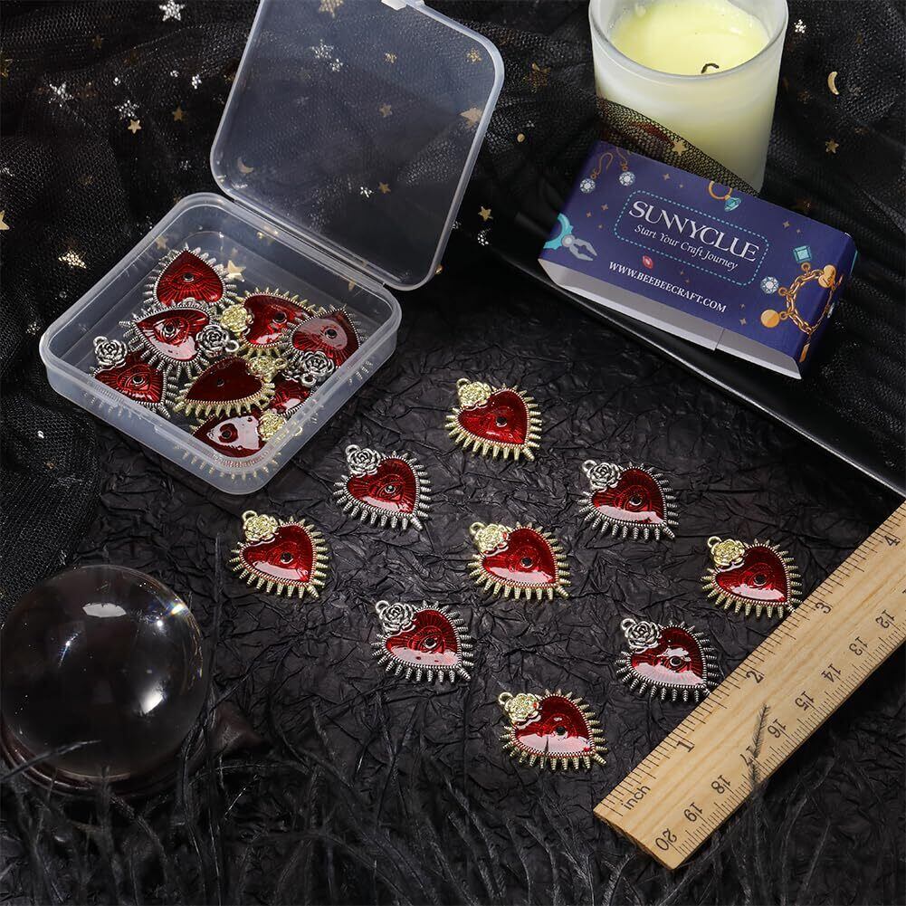SUNNYCLUE 20個2色 ハロウィン チャーム ゴシック風 チャーム エナメル チャーム ココロ パーツ 心 ピアス ゴシック こころ イヤリング 暗黒風 ハート ネックレス 悪魔の目 ブレスレット 目 キーホルダー バラ ムーン 花 メタルパーツ 魔法使い チベットスタイル ヴィンテージ 黒色 薔薇 邪眼 エナメル 幸運のお守り 合金チャーム バラ チャームパーツ アクセサリー 基礎パーツ ジュエリー作り レディース デコキット クラフト手芸 手作りハンドメイド キット DIY飾り物