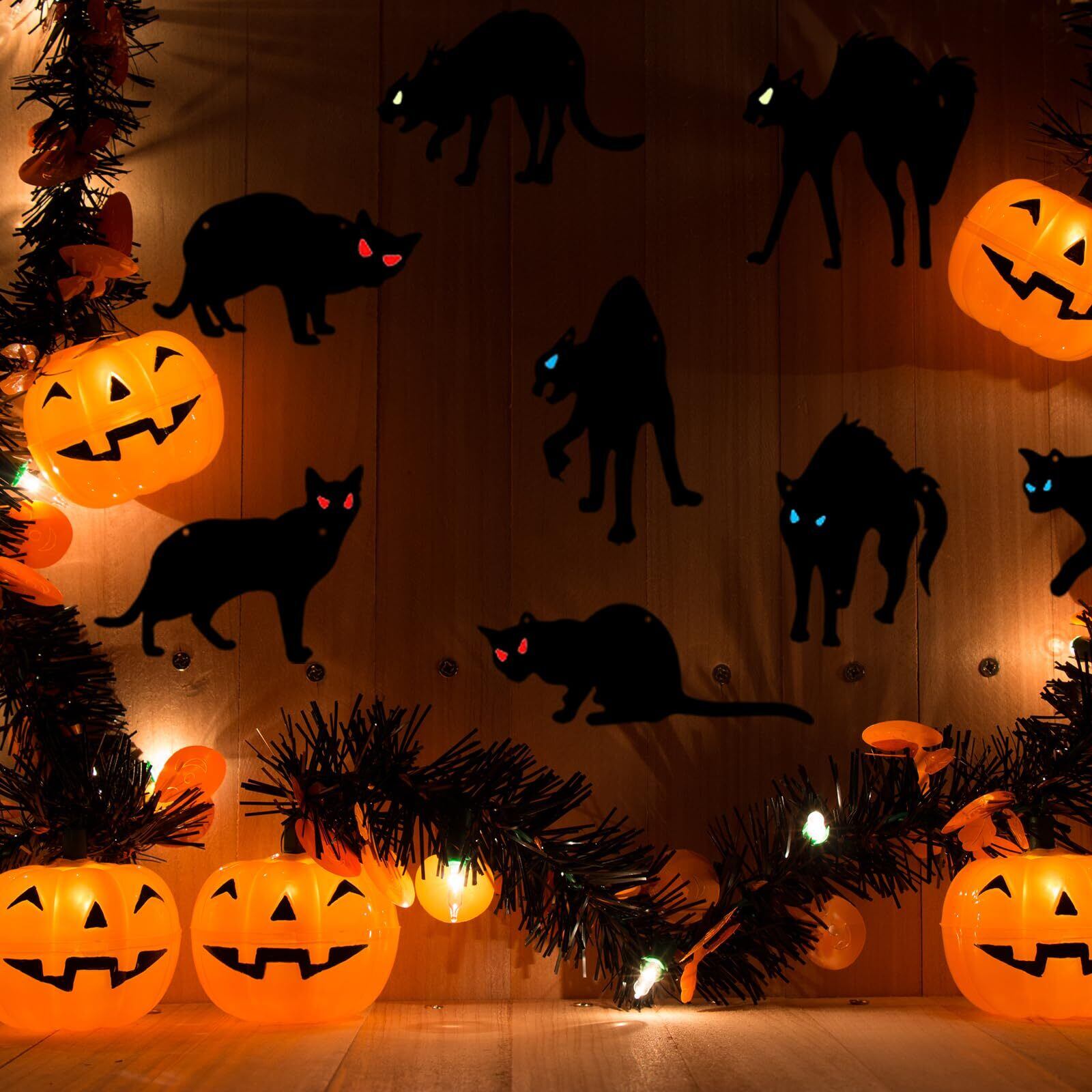 LEISURE CLUB ハロウィン ウォールステッカー 黒猫 飾り 吊り下げ 装飾 ねこ 夜光 壁に貼る ハロウィーン デコレーション 屋外 部屋 店舗 ガーランド (黒猫(12枚入れ))