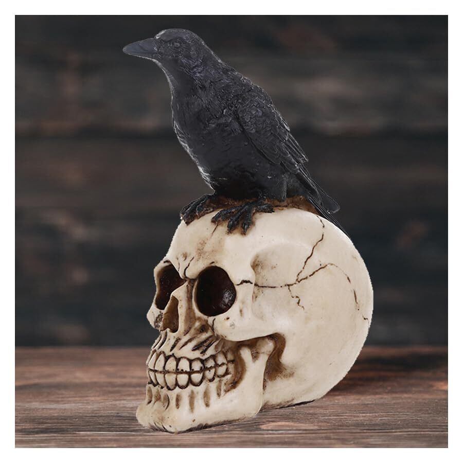 素材:環境にやさしい合成樹脂で、丈夫なカラスの頭蓋骨の装飾は、高品質の手描きと磨き上げられた樹脂で作られています。