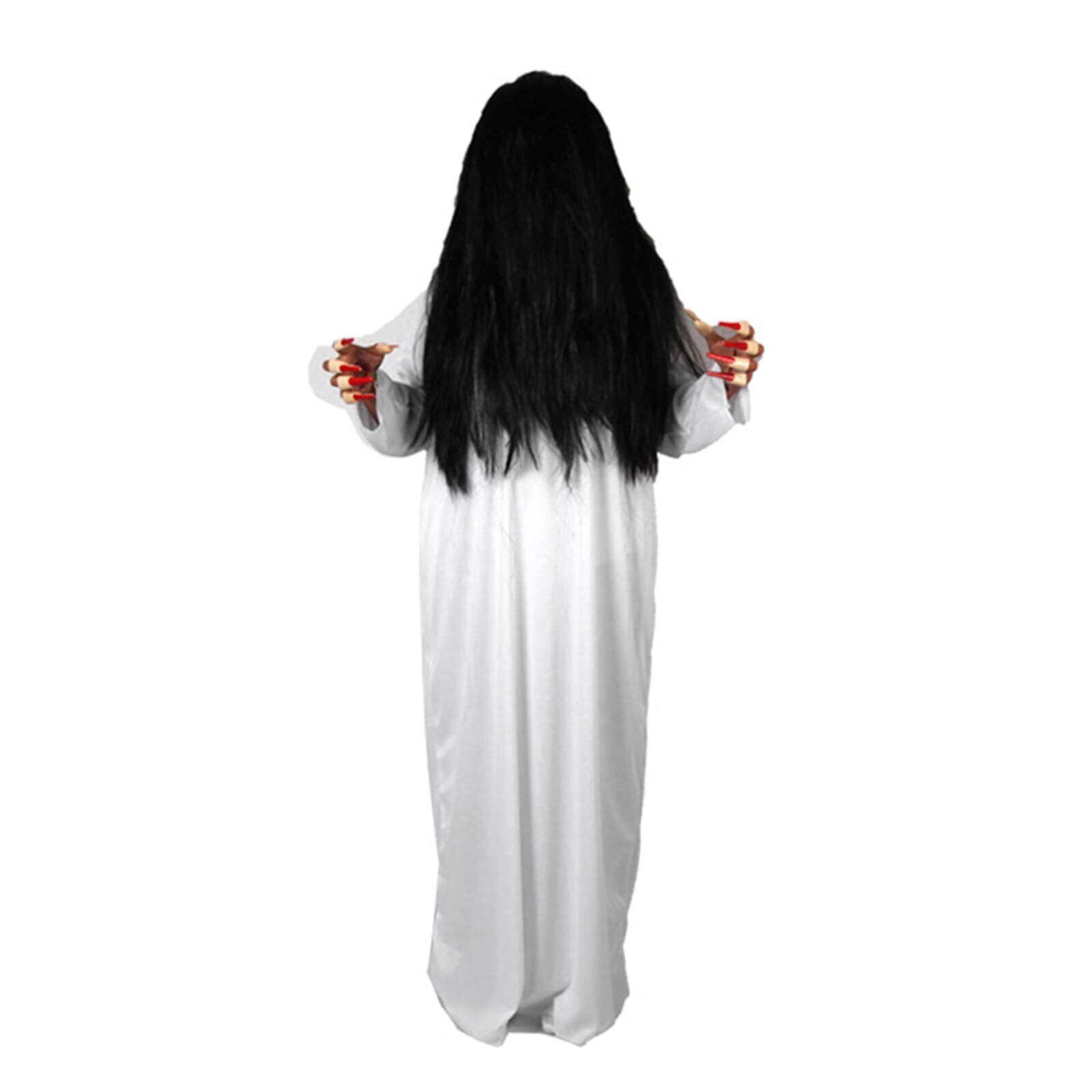 衣装の丈は約150cm(ウィッグを除く)で、小柄な女の子でも楽に調節できます。ウィッグは約70cmの長さで、顔をしっかりカバーできます。ぴったりの衣装が見つからないという悩みとはおさらばして、貞子役になりきりましょう!このウィッグとローブのツーピースセットで、手軽に原作の貞子になりきり、臨場感あふれるホラーロールプレイング体験をお届けします!