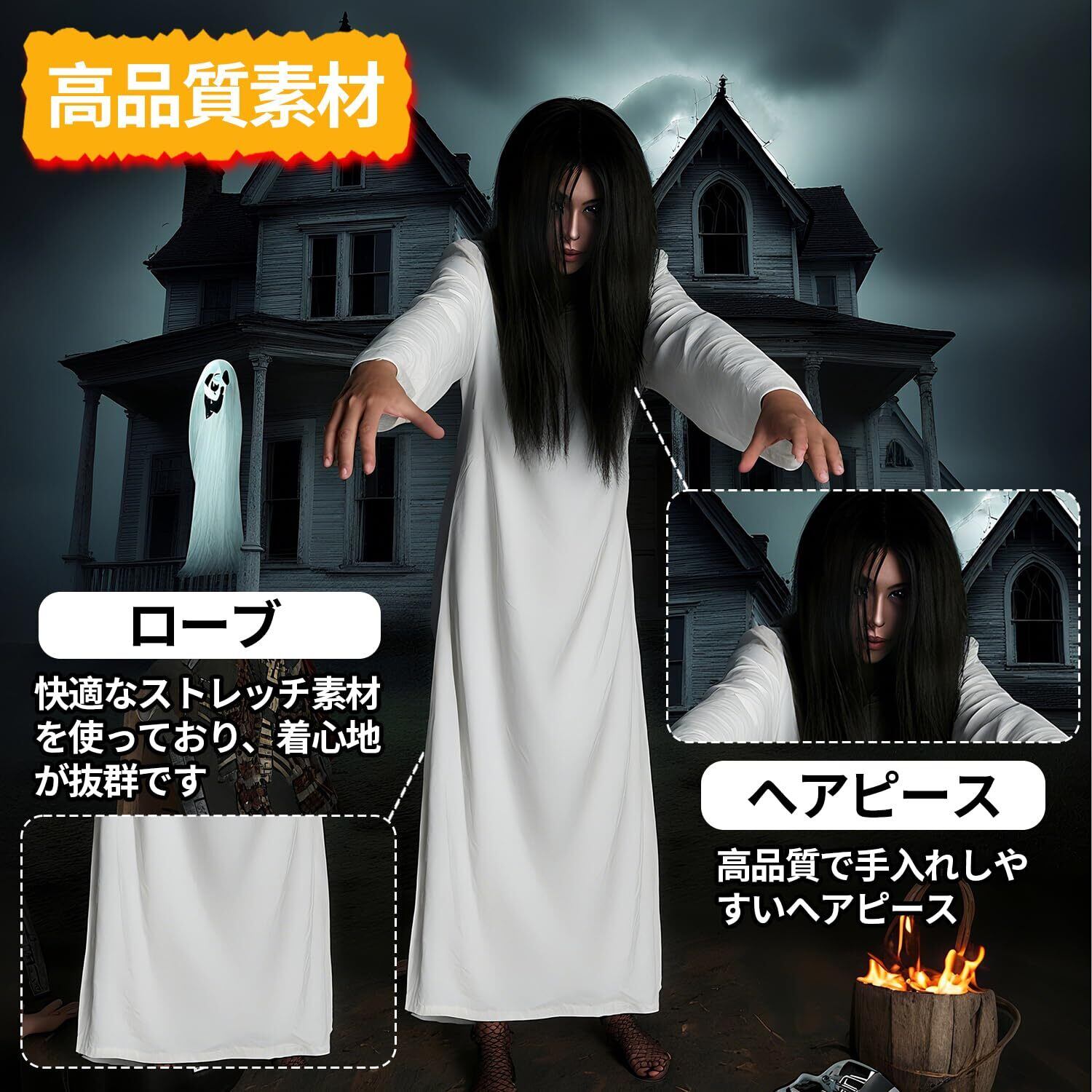 [SHICHANG] 貞子 コスプレ 衣装 おばけ お化け屋敷 仮装 コスチューム 大人 ハロウィン コスプレ 怨霊の女 男女兼用 ローブ+ウィッグ 2点セット ホワイト