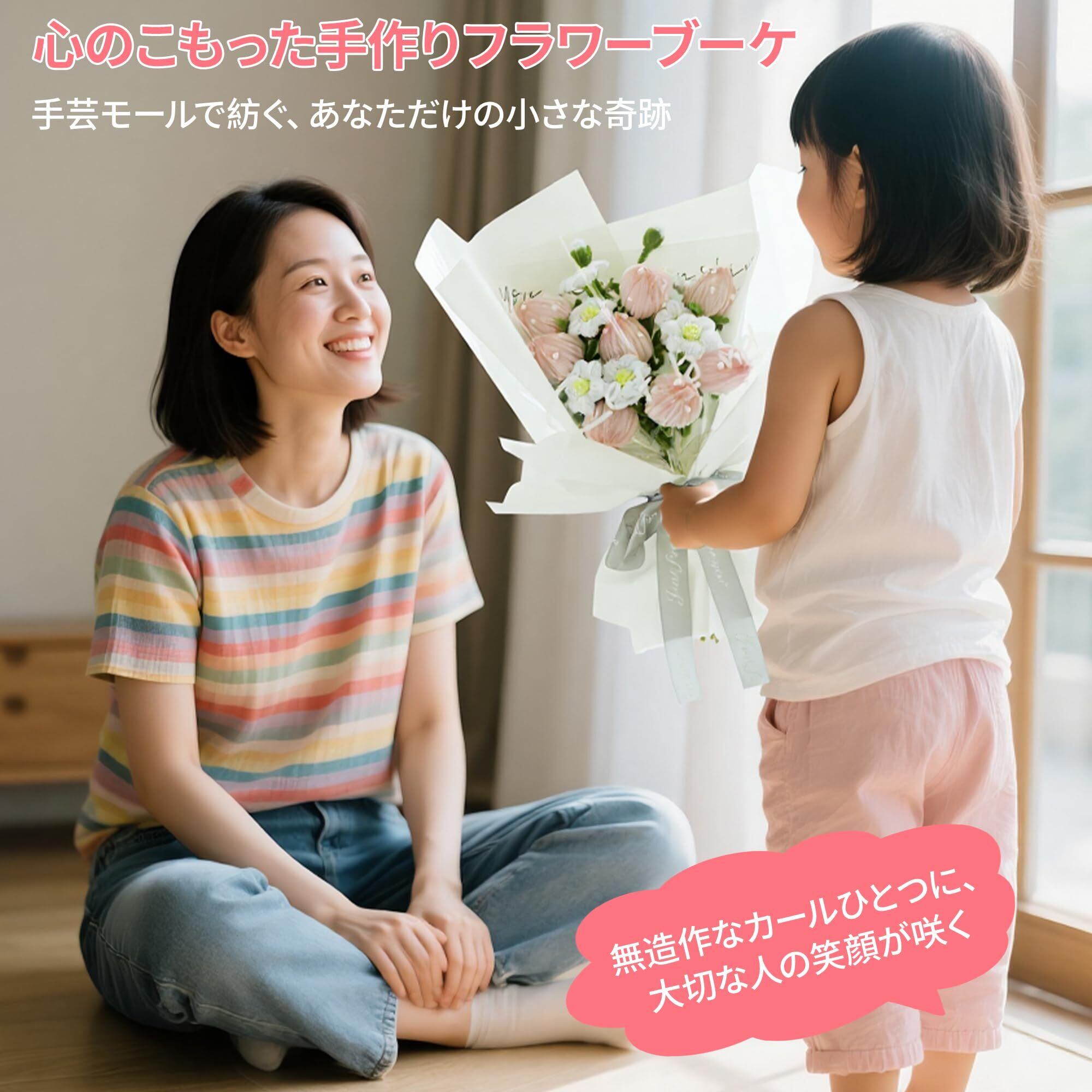 手芸モール 造花セット 【日本語のチュートリアルビデオ付き・全材料付き】桜/ラベンダー/ハロウィン髪飾り 知育玩具 DIY 花束ギフト インテリア飾り 永久保存 手作りアート 曲げ可能 色選択可能 記念日/誕生日/母の日/クリスマス/新年/卒業シーズン 贈り物(桜ミックスのブーケ)